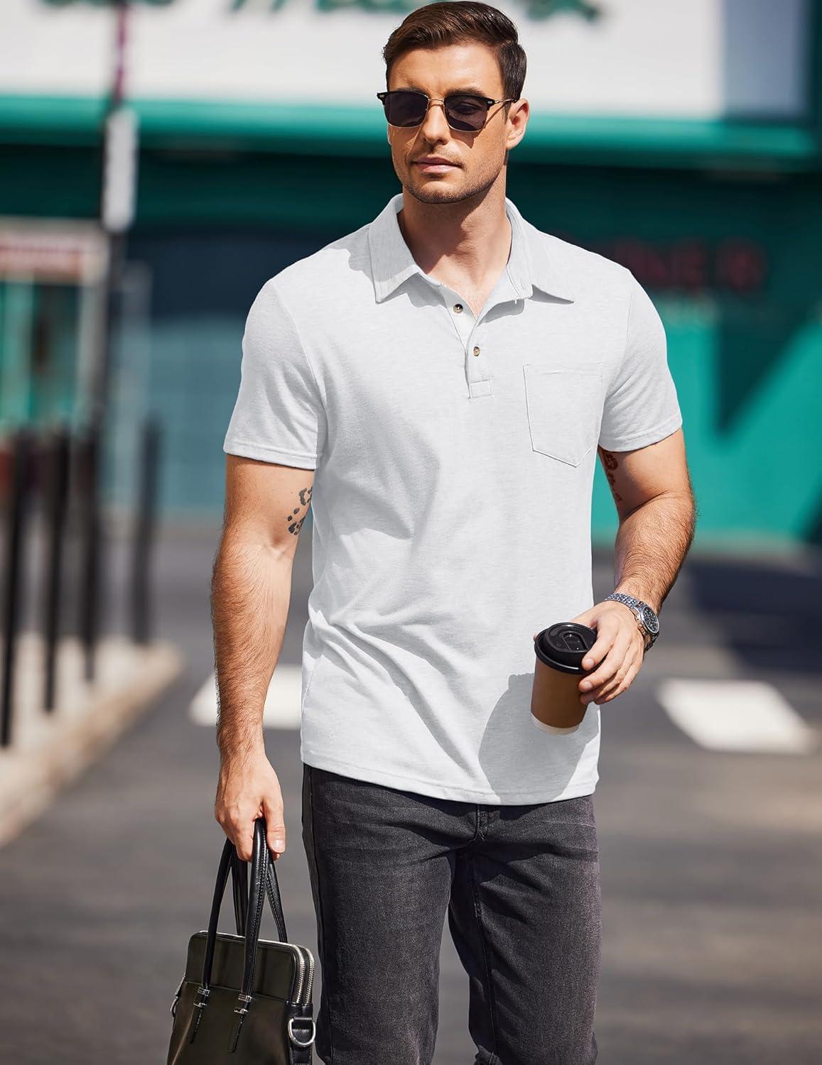 Get the COOFANDY Men Short Sleeve Polo Shirt Casual Summer Collar Shirts Dress Button Polo T Shirt Classic Golf Shirts(White) you want at a discounted price during our markdown sale event.