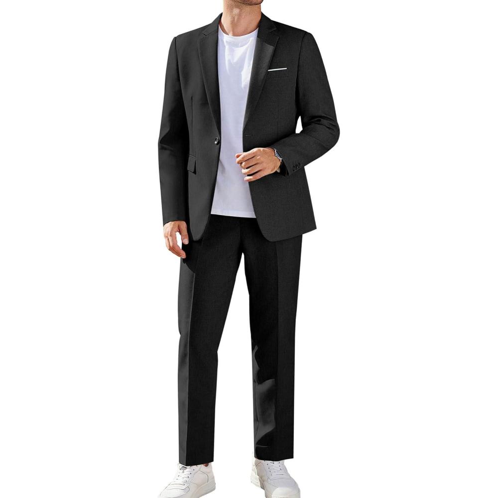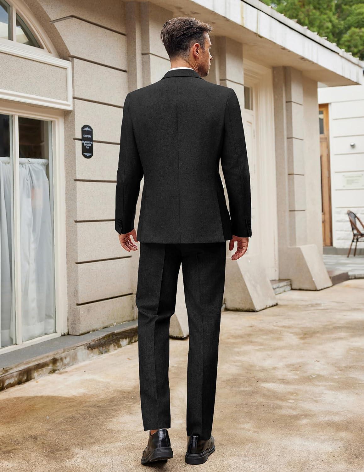 COOFANDY Men Suits Classic Fit 2 Piece Suit Set One Button Casual Blazer Wedding Bussiness Suit Separates(Black)
