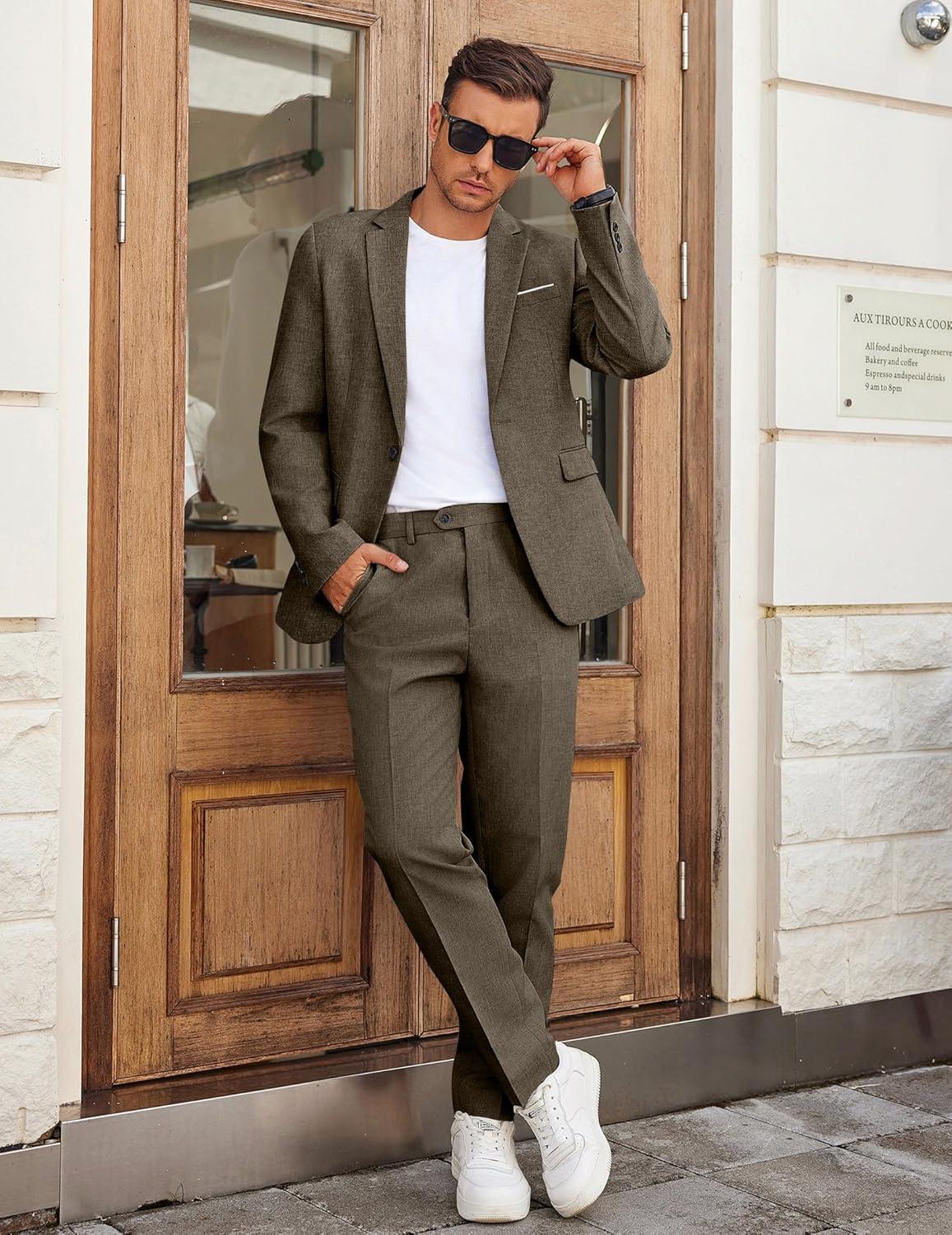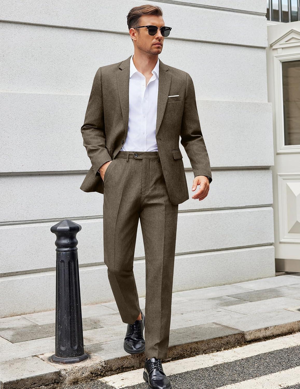 COOFANDY Men Suits Classic Fit 2 Piece Suit Set One Button Casual Blazer Wedding Bussiness Suit Separates(Brown)