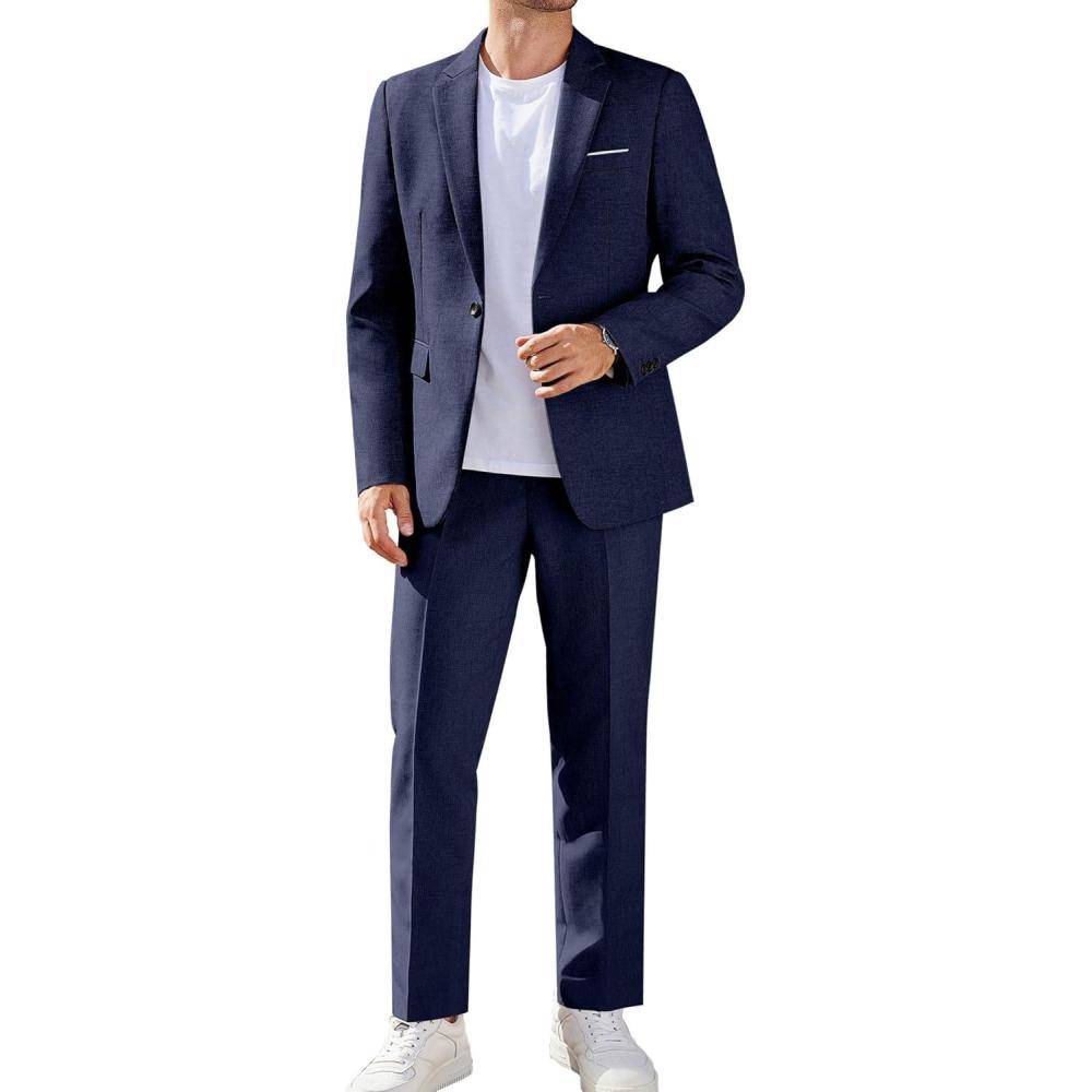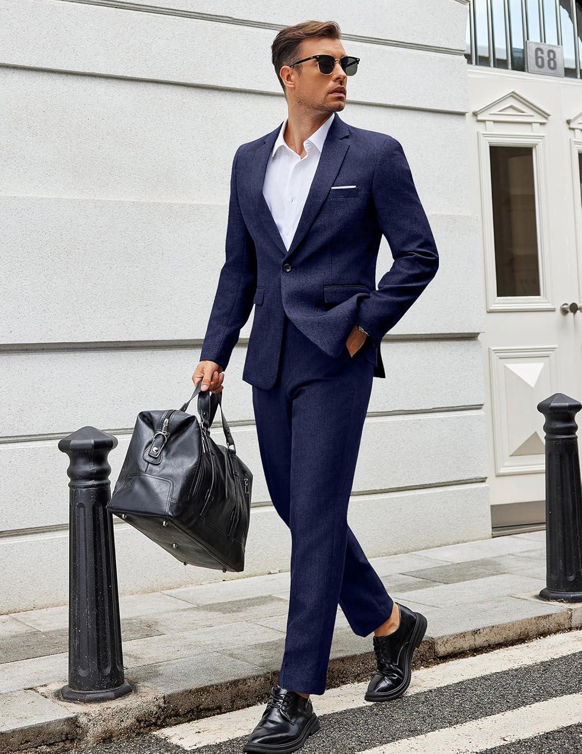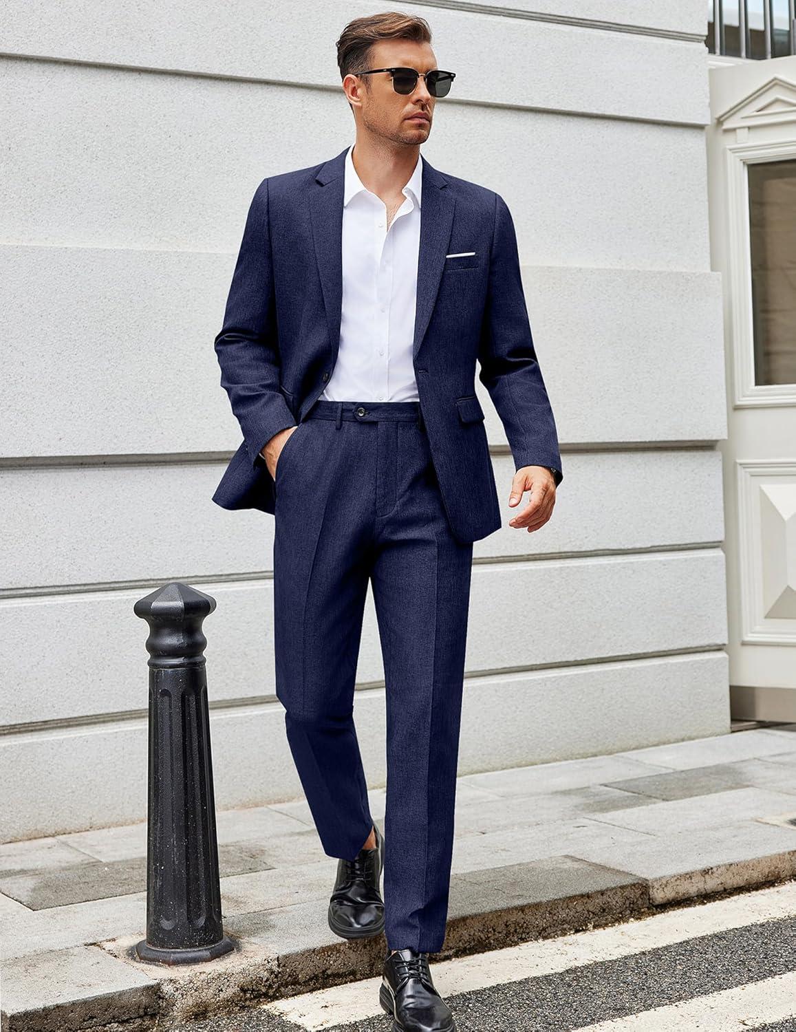 COOFANDY Men Suits Classic Fit 2 Piece Suit Set One Button Casual Blazer Wedding Bussiness Suit Separates(Dark Blue)