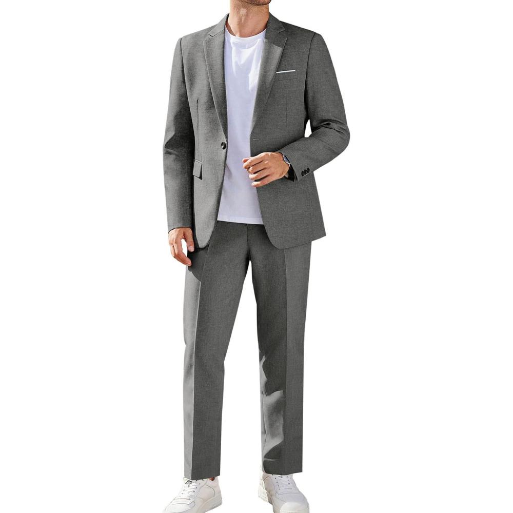 COOFANDY Men Suits Classic Fit 2 Piece Suit Set One Button Casual Blazer Wedding Bussiness Suit Separates(Linen Gray)