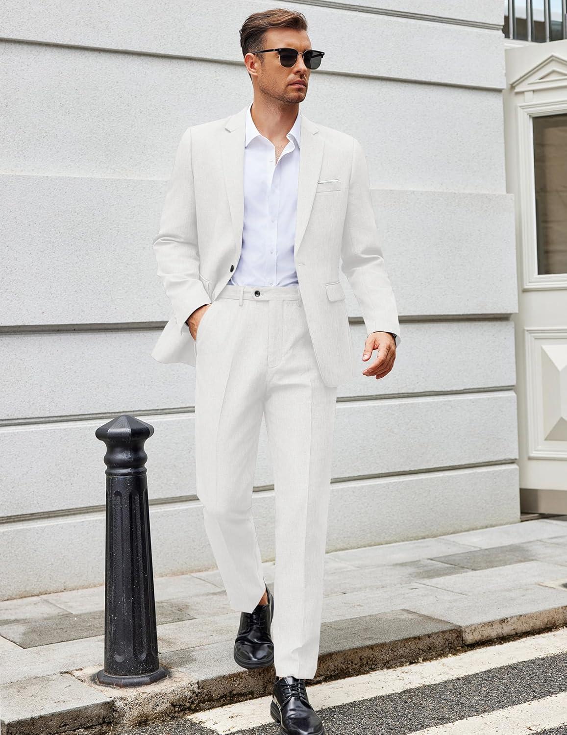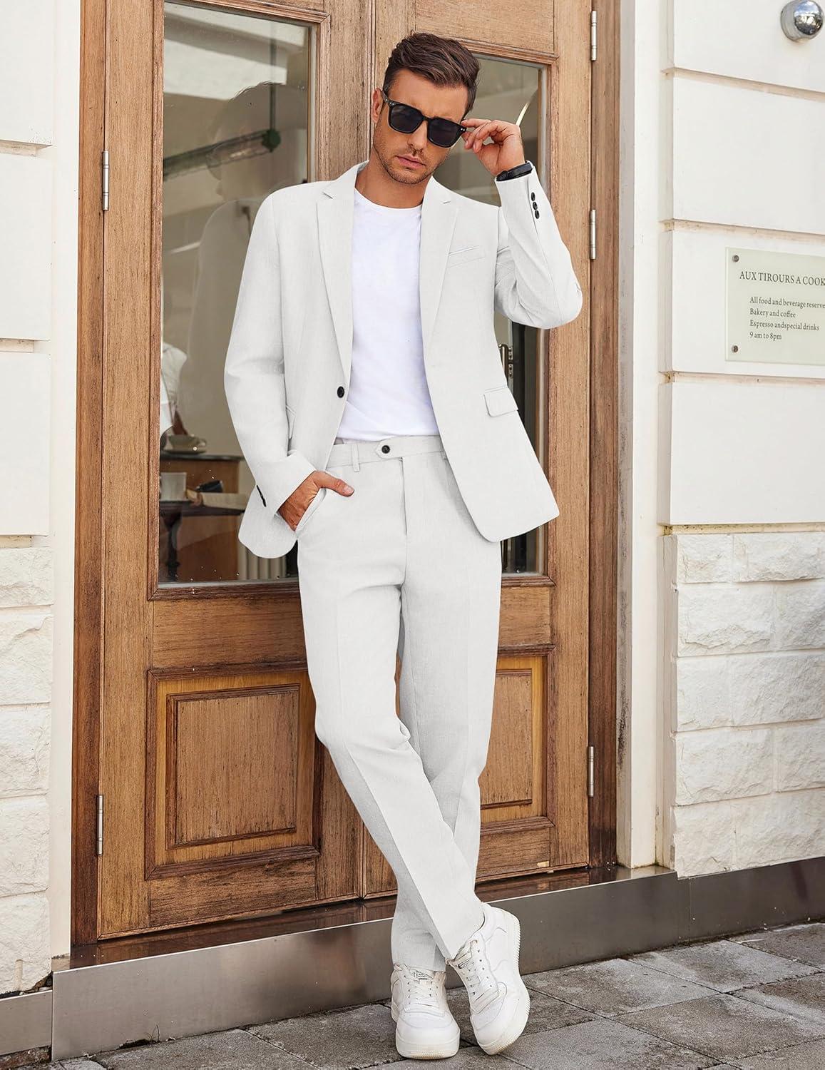 Get your hands on our newest COOFANDY Men Suits Classic Fit 2 Piece Suit Set One Button Casual Blazer Wedding Bussiness Suit Separates(White) and enjoy a limited-time discount offer.
