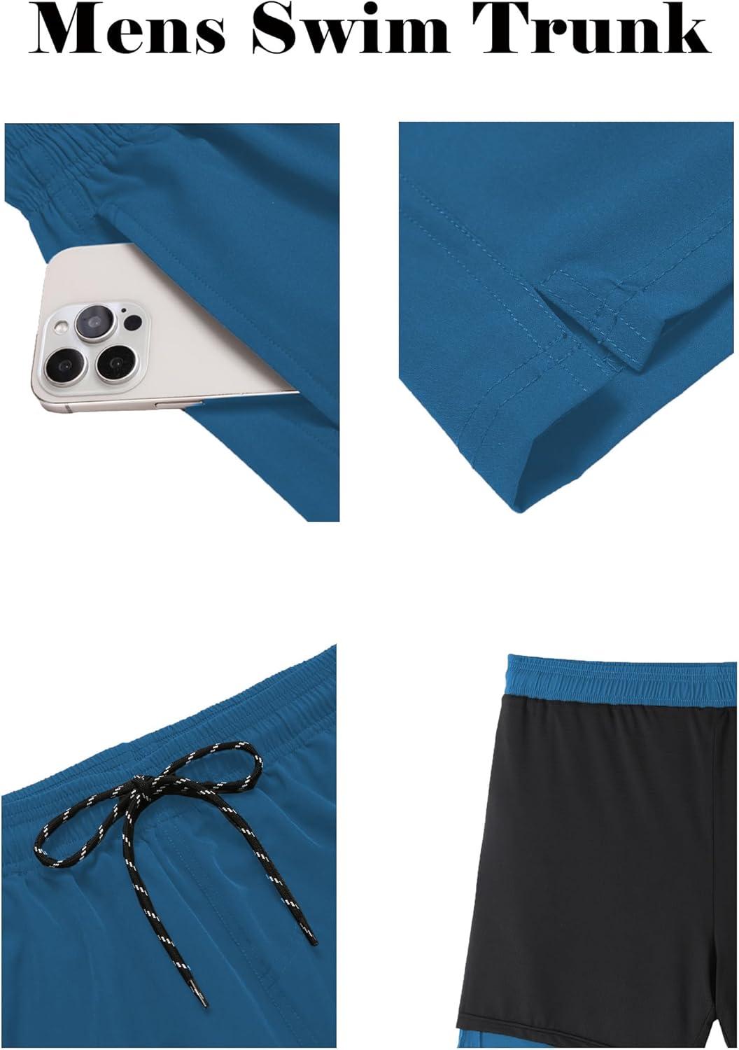 COOFANDY Men Swim Trunk with Compression Liner 2 in 1 Swimwear Bathing Suit Quick Dry Board Short(Lake Blue)