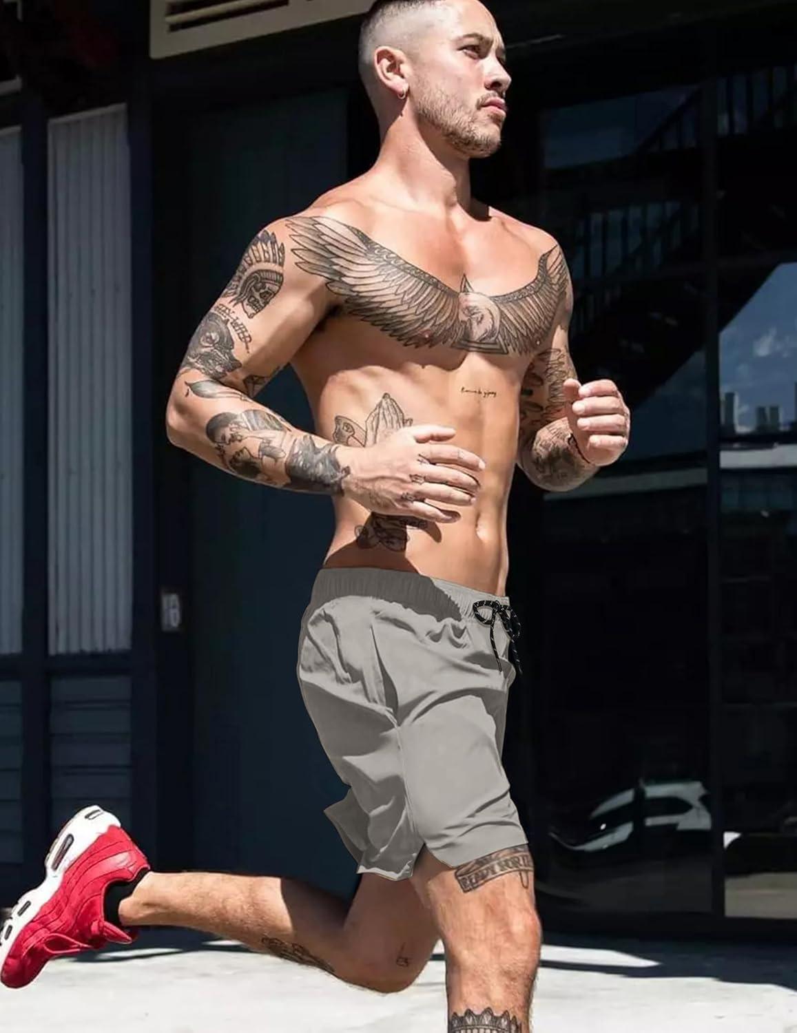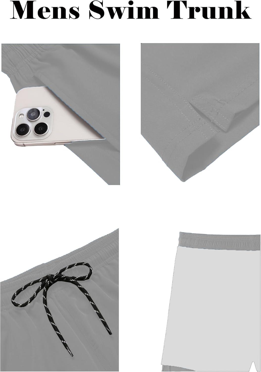 COOFANDY Men Swim Trunk with Compression Liner 2 in 1 Swimwear Bathing Suit Quick Dry Board Short(Light Grey)