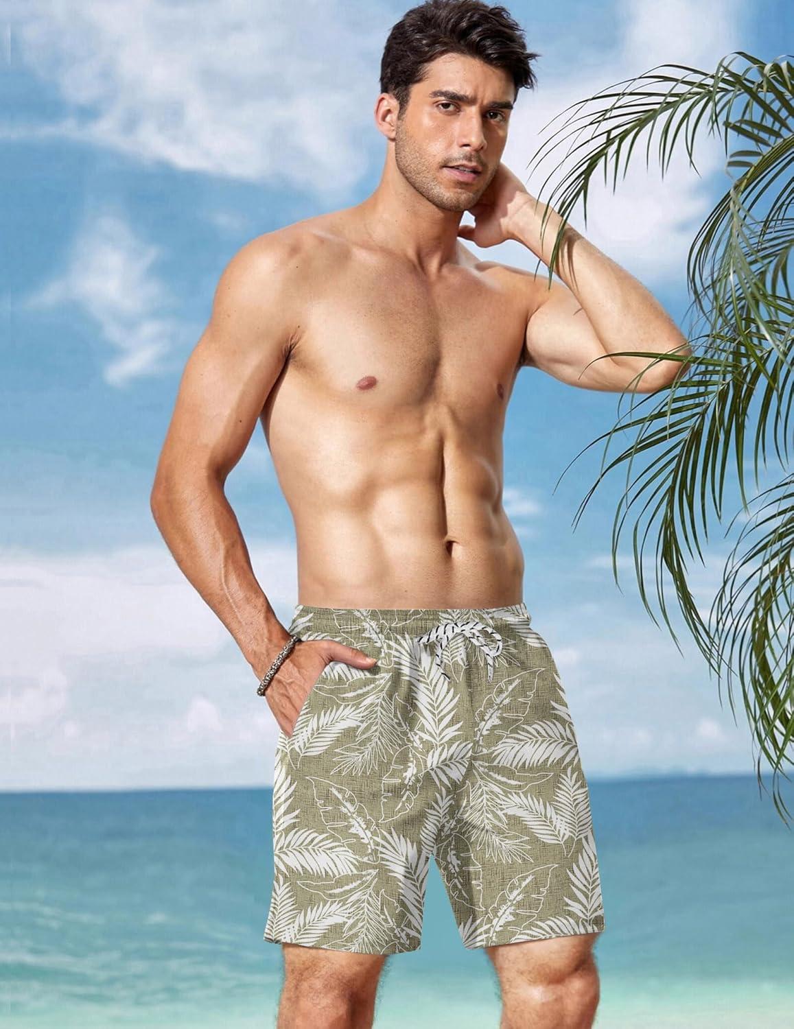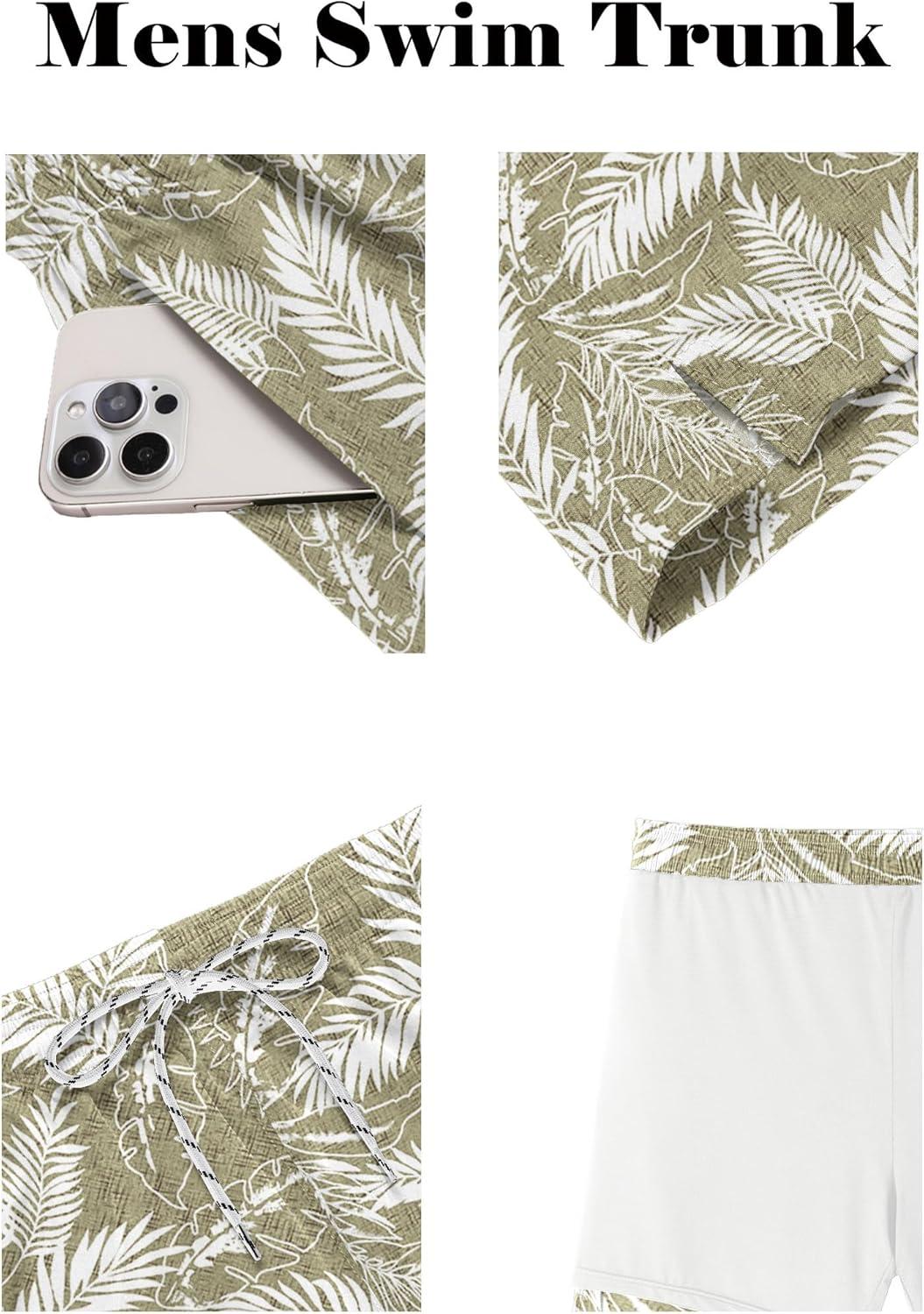 imageCOOFANDY Men Swim Trunk with Compression Liner 2 in 1 Swimwear Bathing Suit Quick Dry Board ShortP Plam Leaf