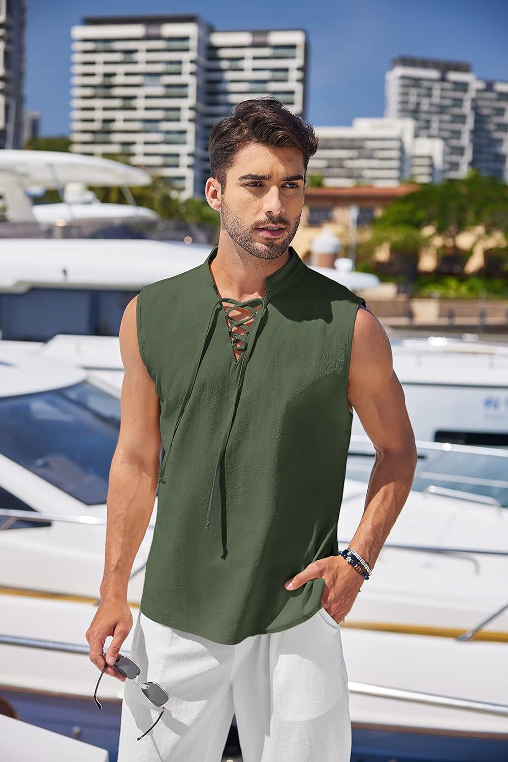 Our clearance event features the best deals on COOFANDY Men Tank Top Cotton Linen Beach Sleeveless Shirt Lace Up Bohemian Hippie Renaissance Pirate Kilt Medieval Tunic(Army Green) and accessories. Shop now!