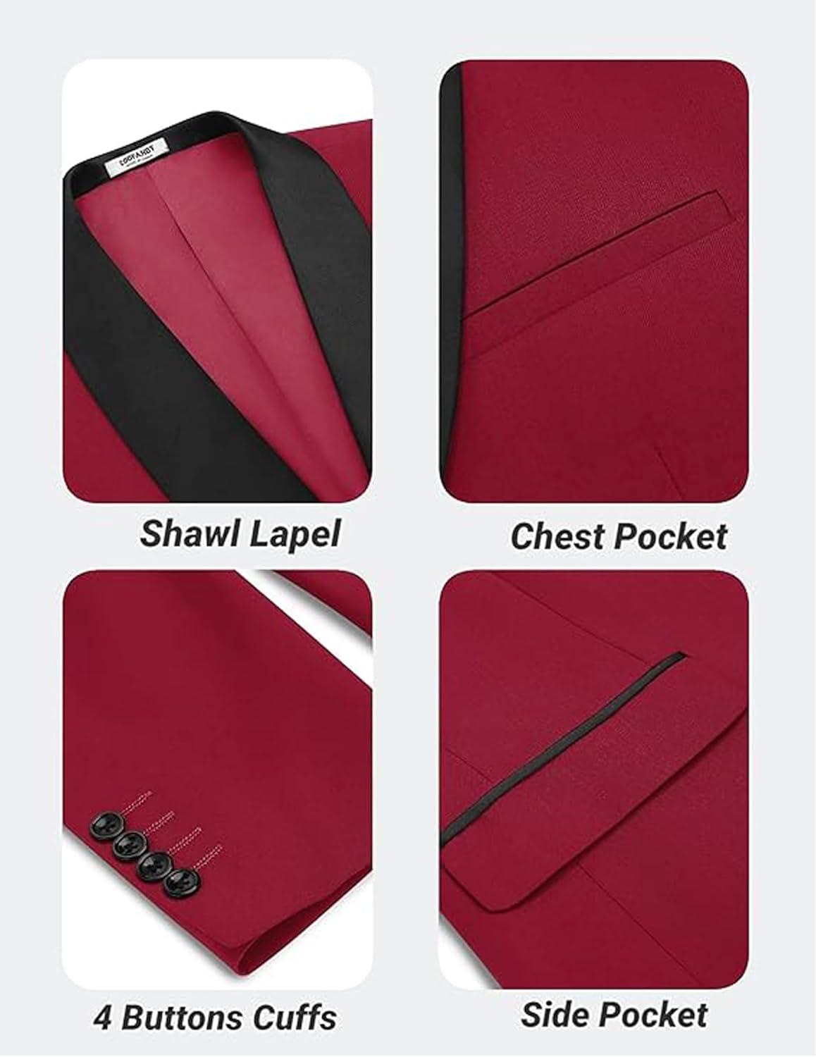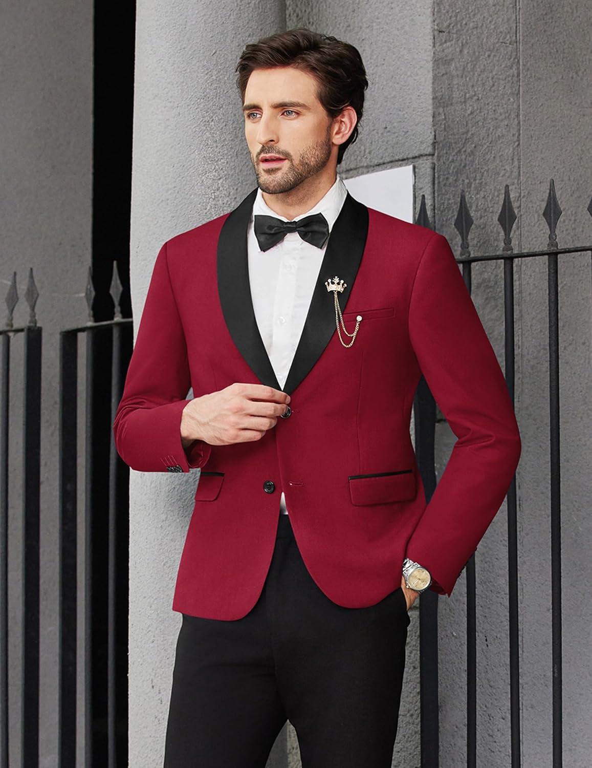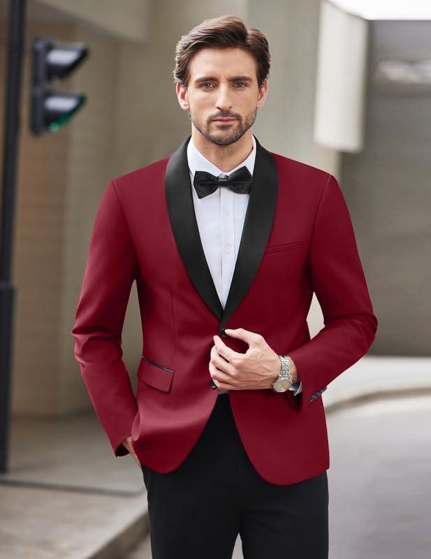 COOFANDY Men Tuxedo Jacket Slim Fit Blazer Suit Jacket Prom Dinner Party Wedding(Dark Red)