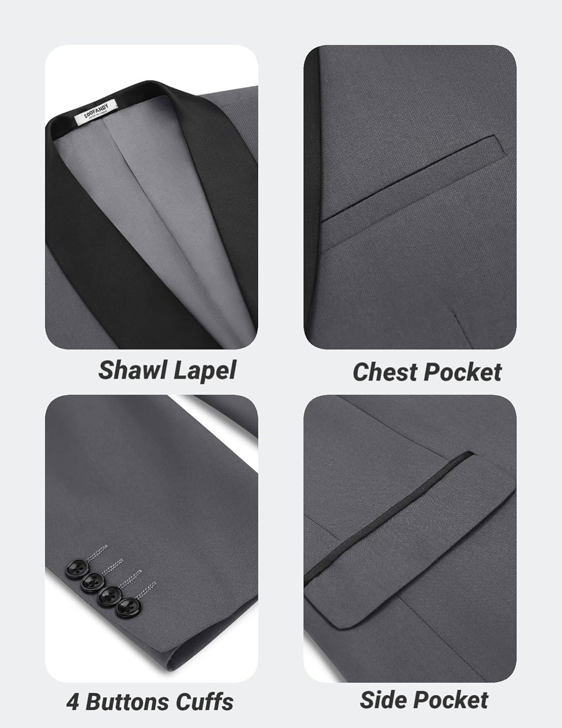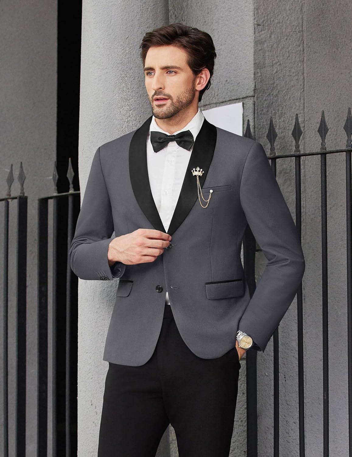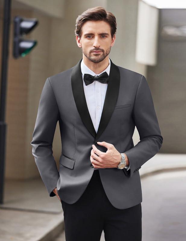 COOFANDY Men Tuxedo Jacket Slim Fit Blazer Suit Jacket Prom Dinner Party Wedding(Grey)