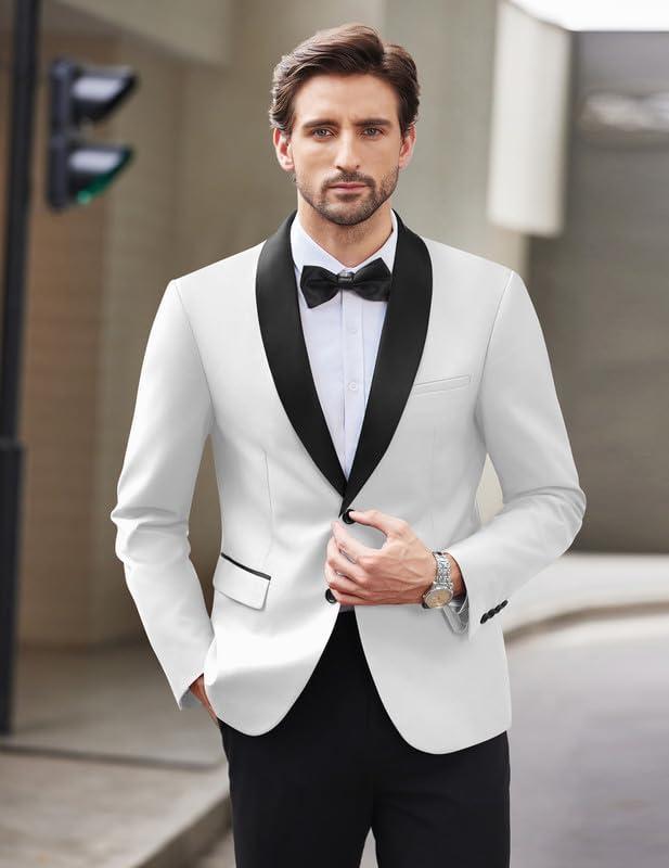 COOFANDY Men Tuxedo Jacket Slim Fit Blazer Suit Jacket Prom Dinner Party Wedding(White)