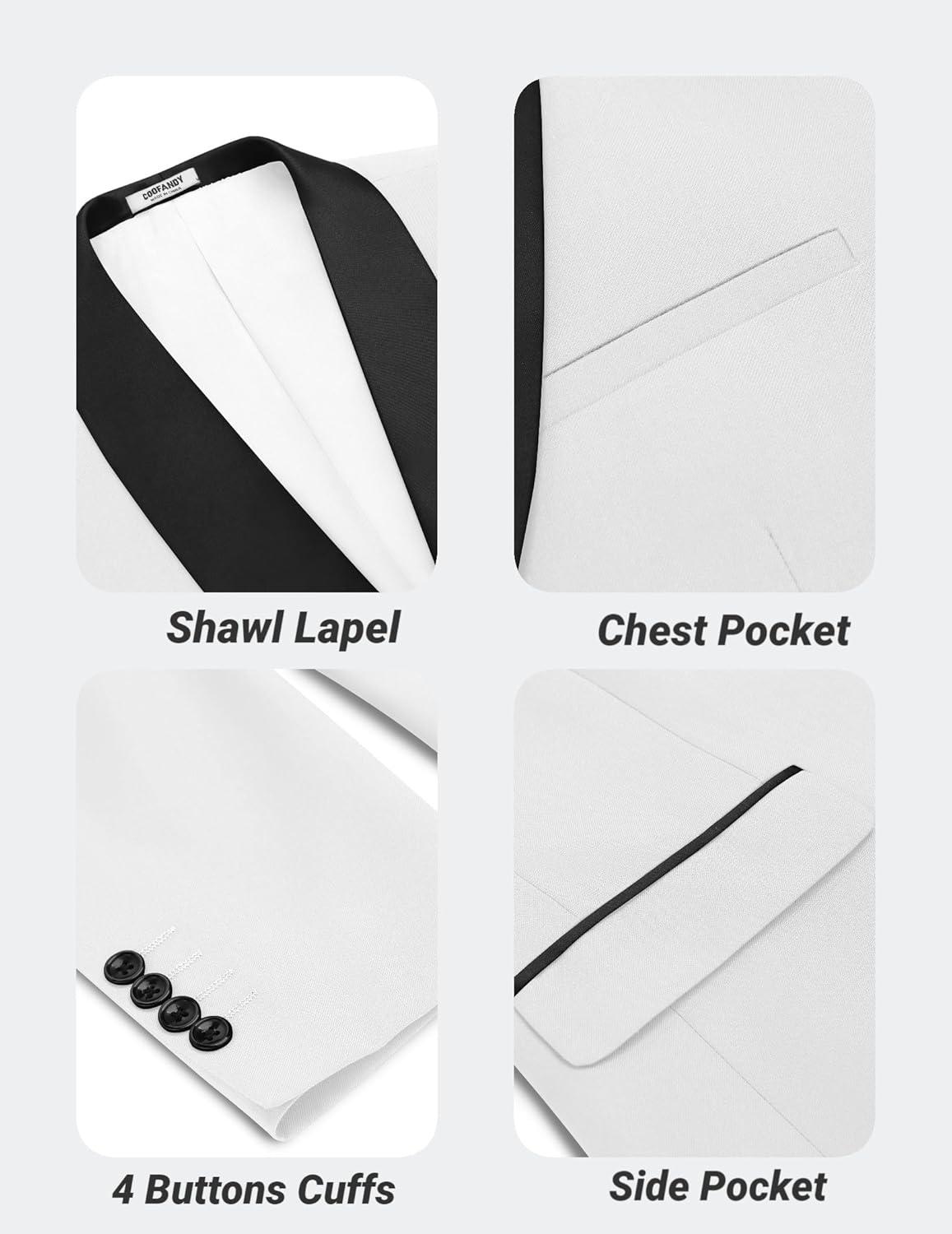 Get your hands on our newest COOFANDY Men Tuxedo Jacket Slim Fit Blazer Suit Jacket Prom Dinner Party Wedding(White) and enjoy a limited-time discount offer.