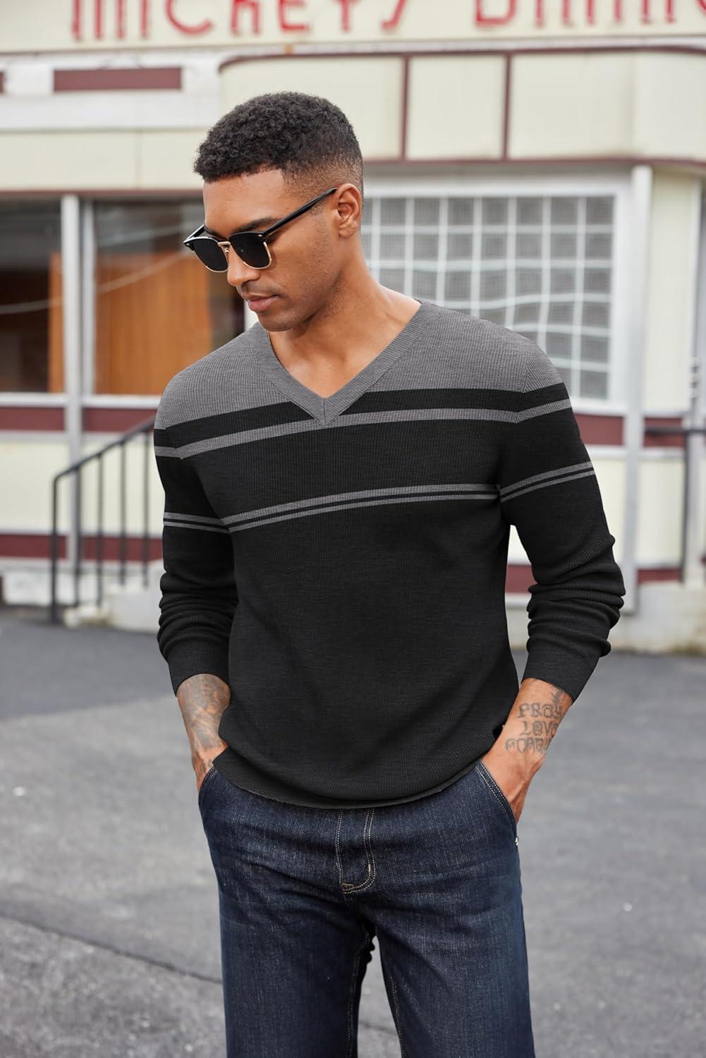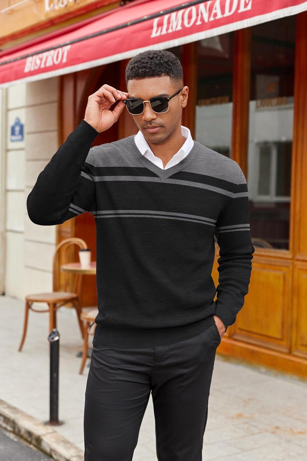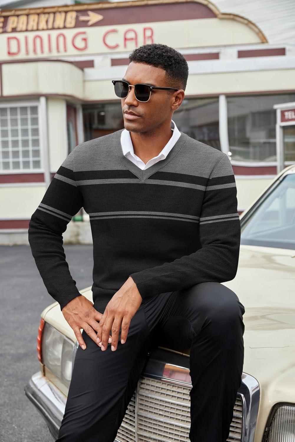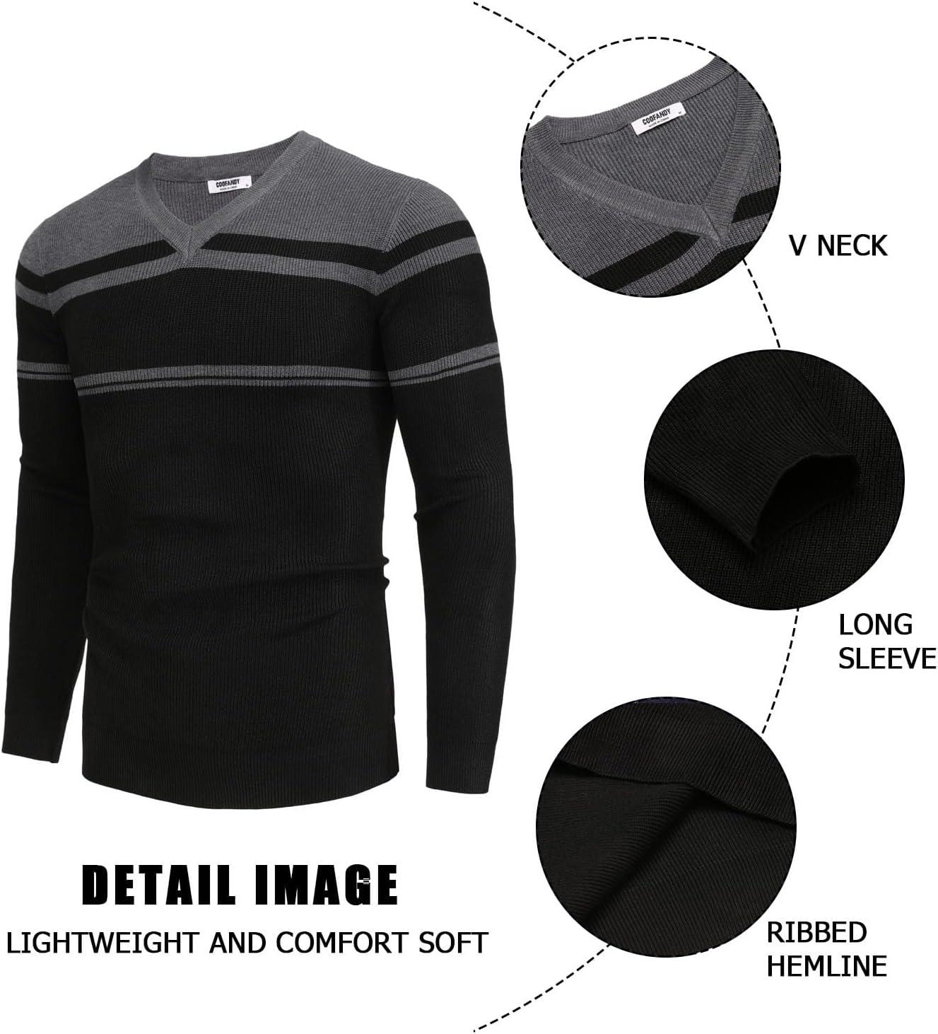 COOFANDY Men V Neck Dress Sweater Knit Long Sleeve Casual Slim Fit Pullover Sweater(Black & Dark Heather Grey)