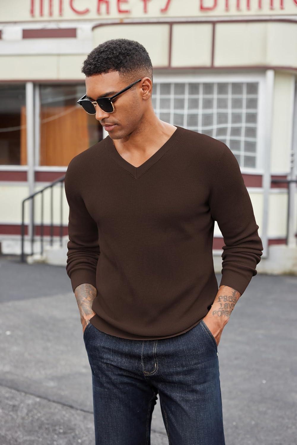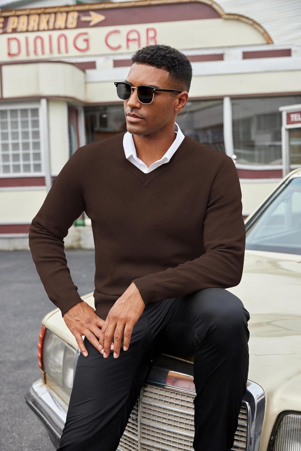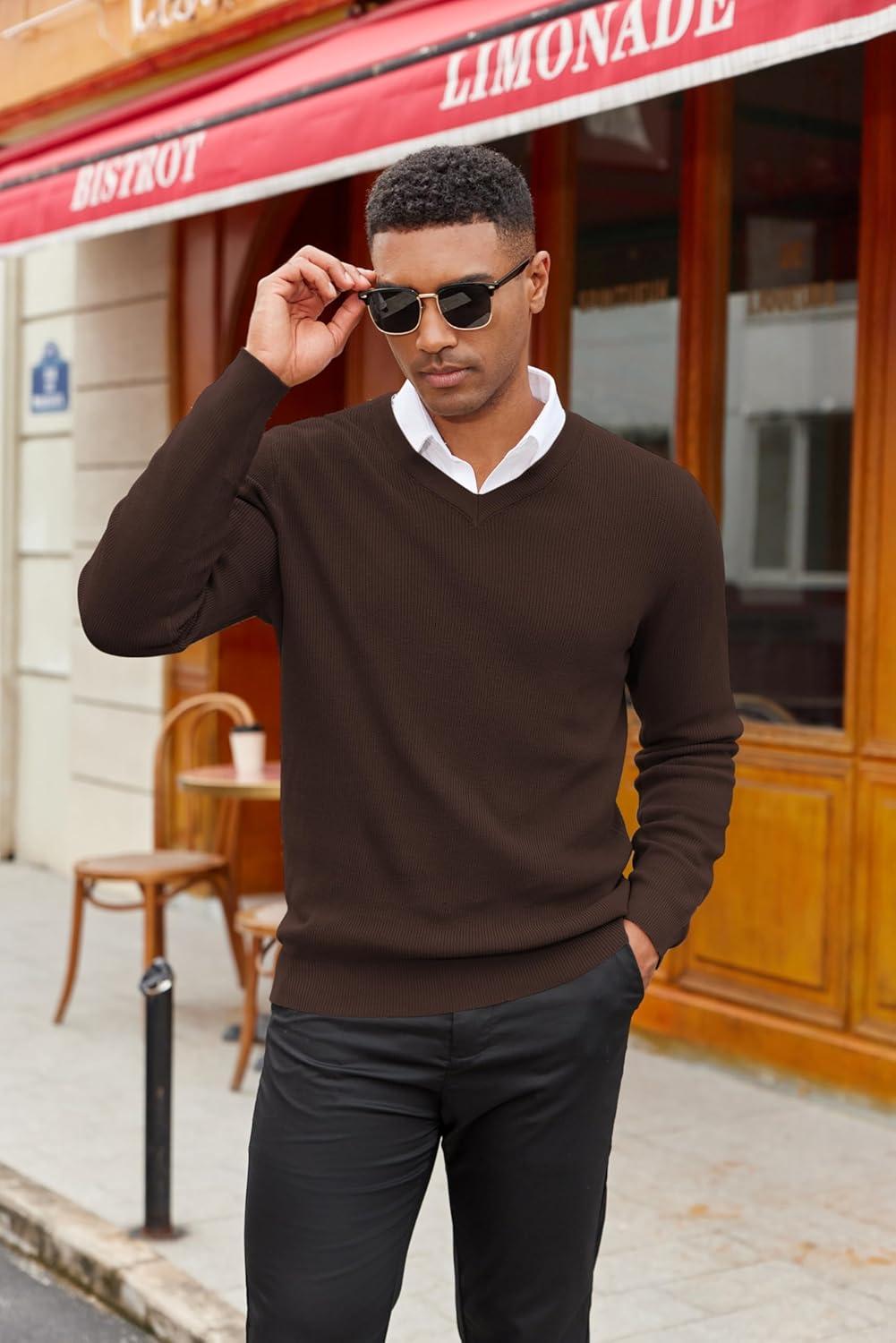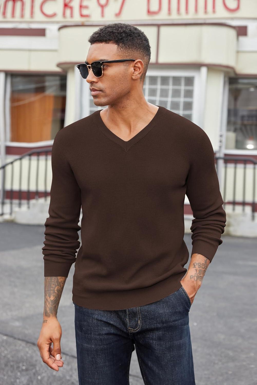 Save up to 40% on COOFANDY Men V Neck Dress Sweater Knit Long Sleeve Casual Slim Fit Pullover Sweater(Brown) styles during our end-of-season sale.