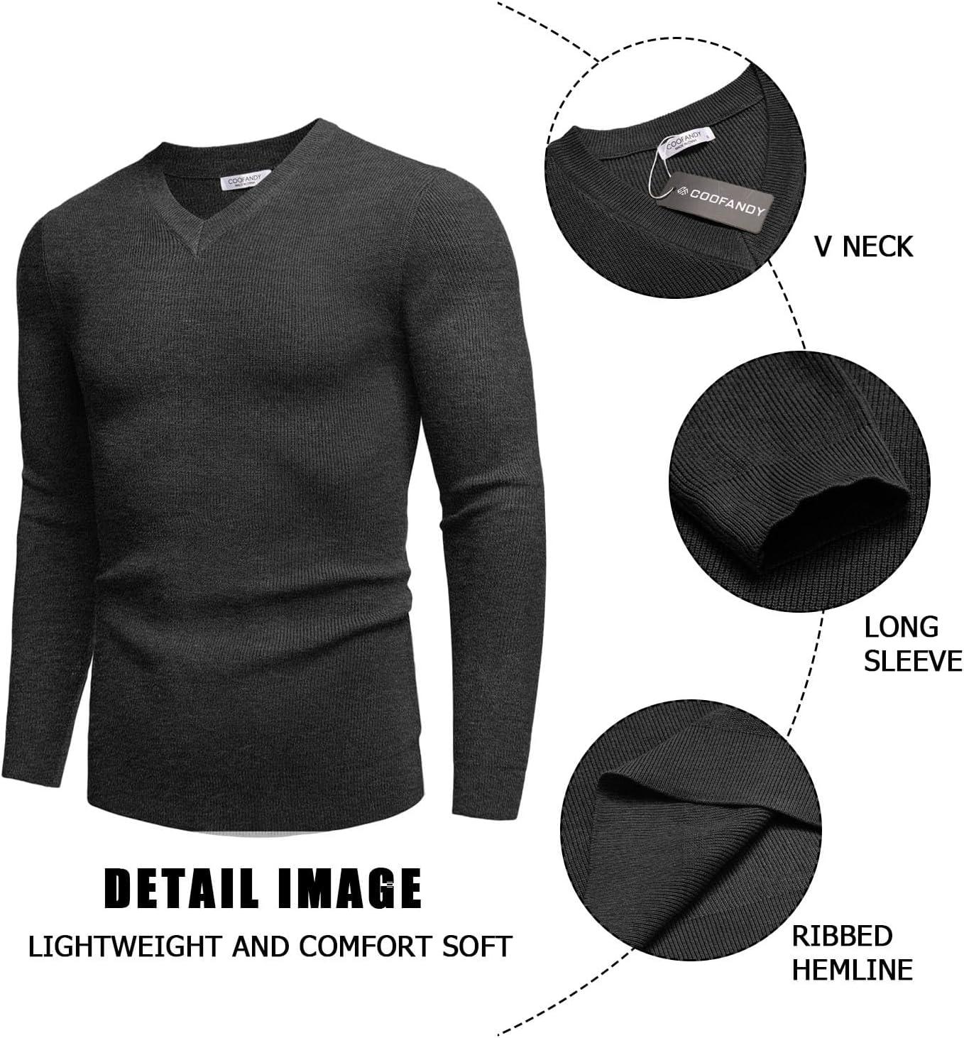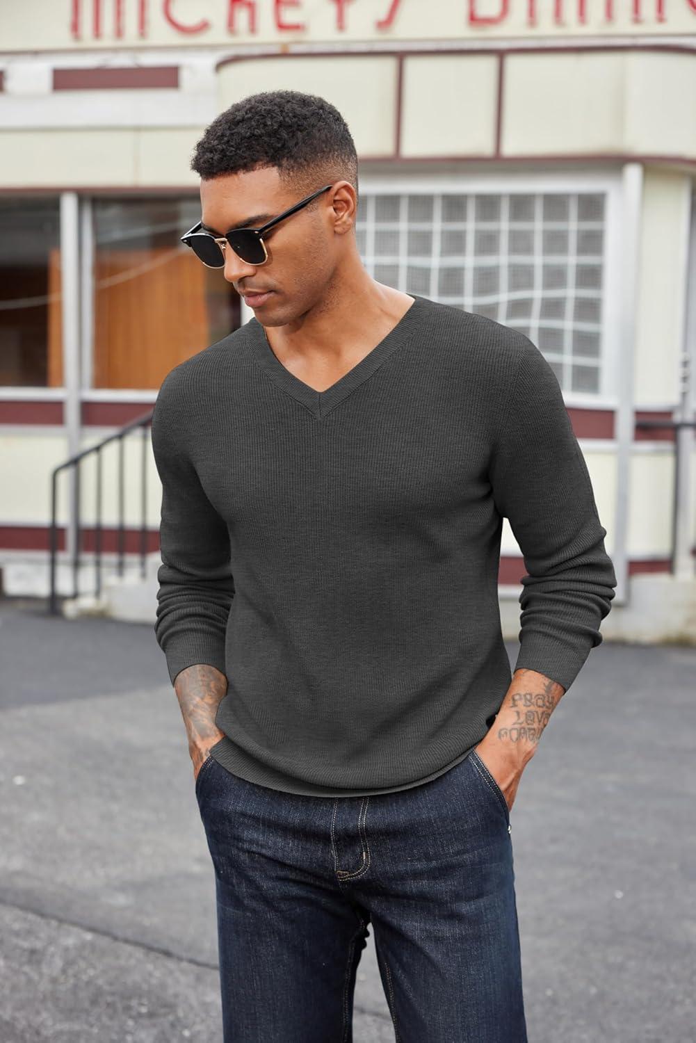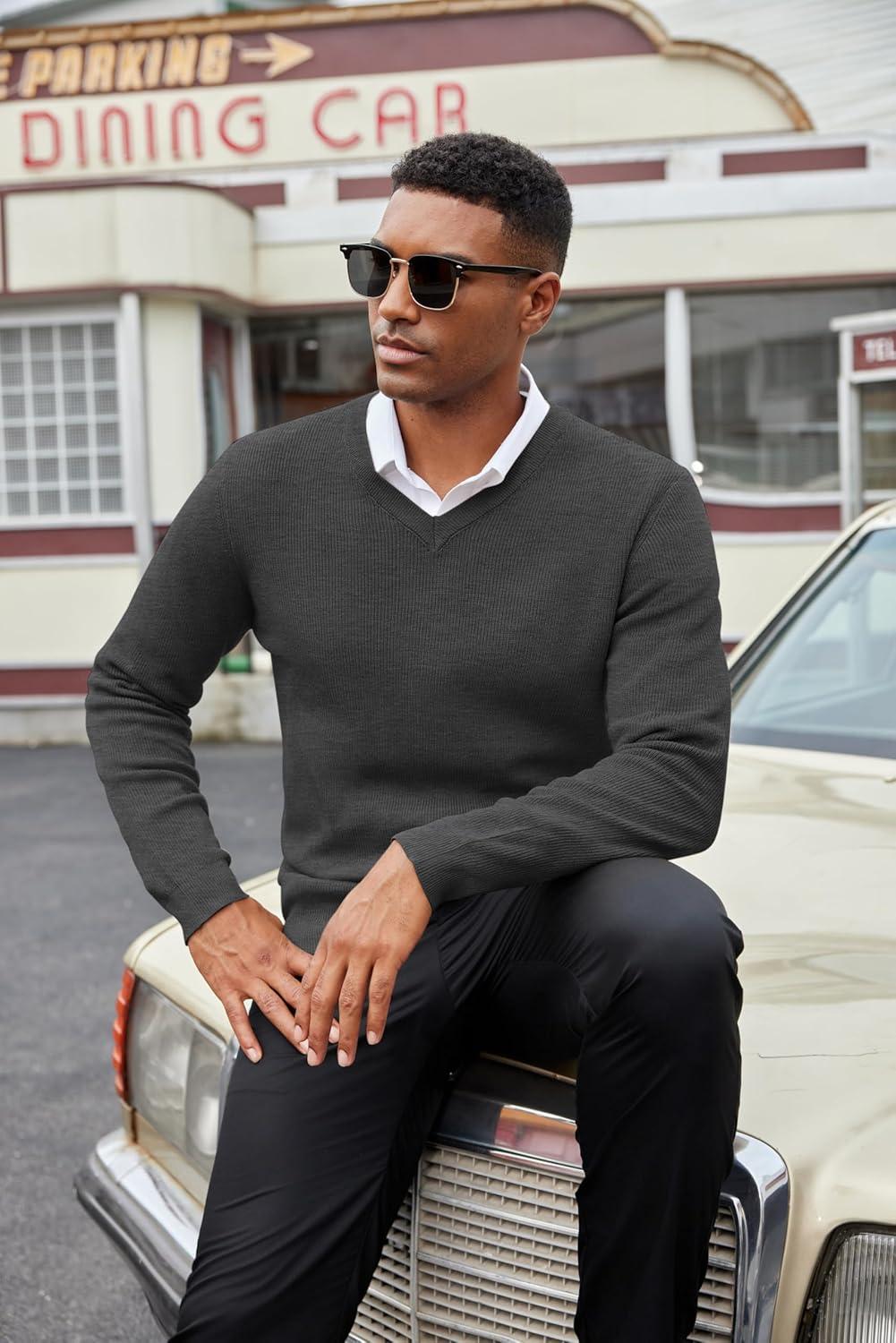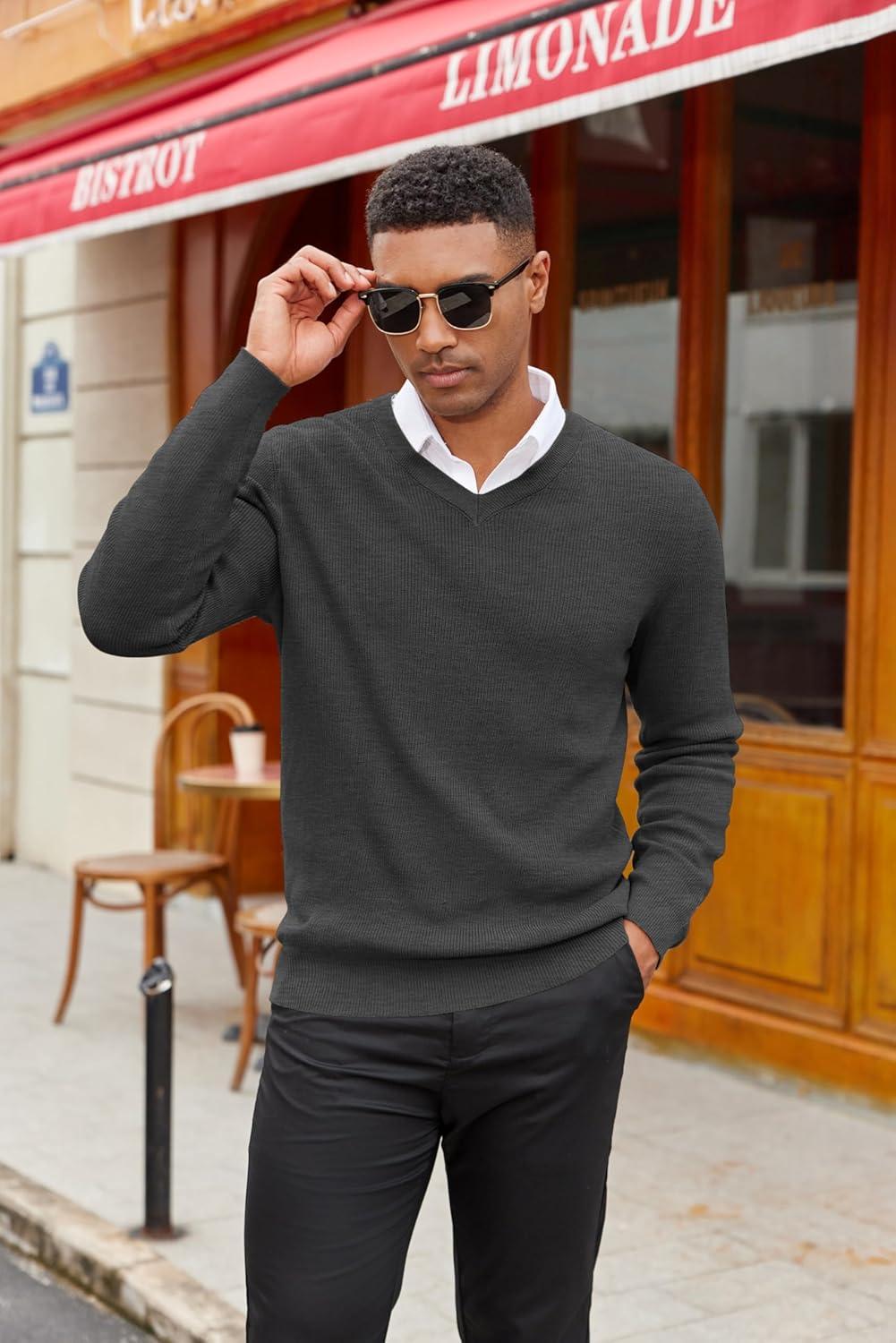 COOFANDY Men V Neck Dress Sweater Knit Long Sleeve Casual Slim Fit Pullover Sweater(Dark Grey)