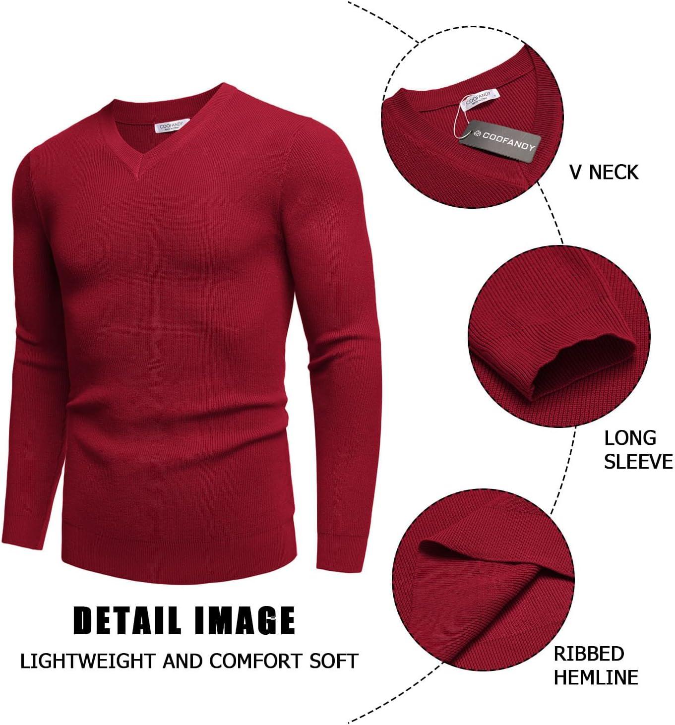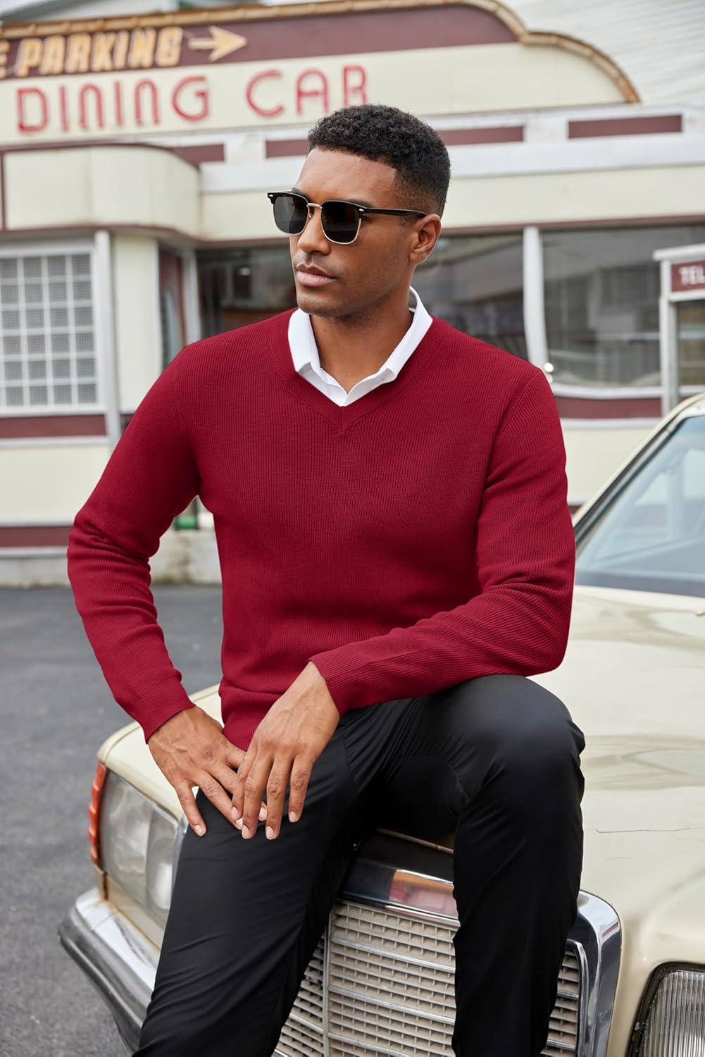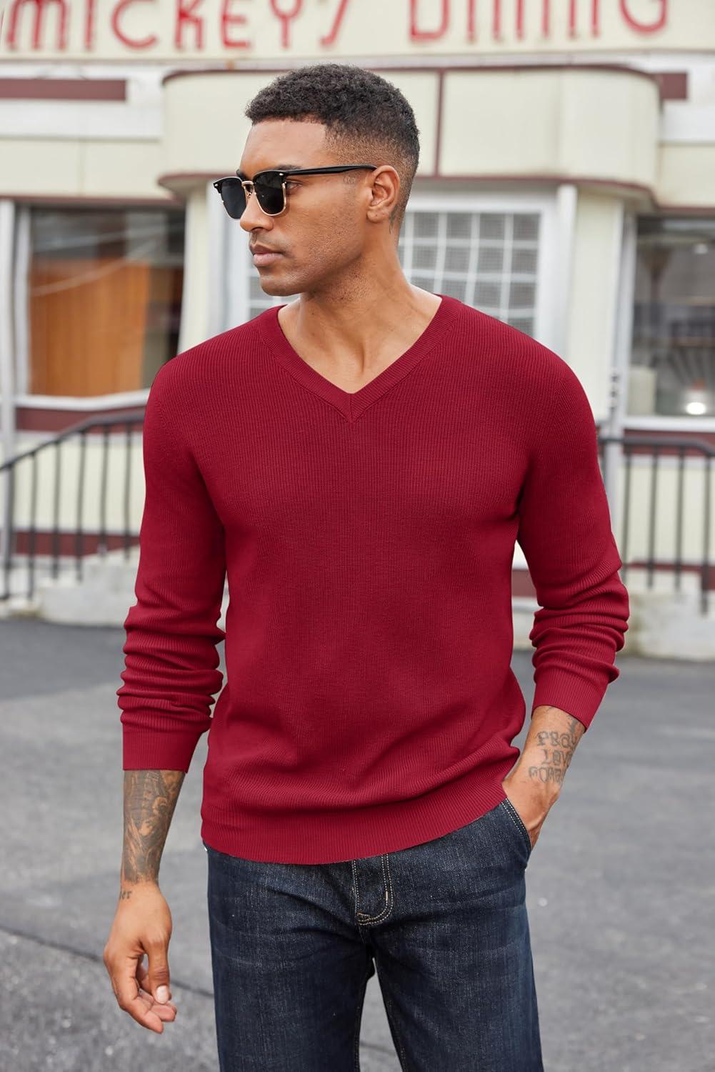 COOFANDY Men V Neck Dress Sweater Knit Long Sleeve Casual Slim Fit Pullover Sweater(Wine Red)
