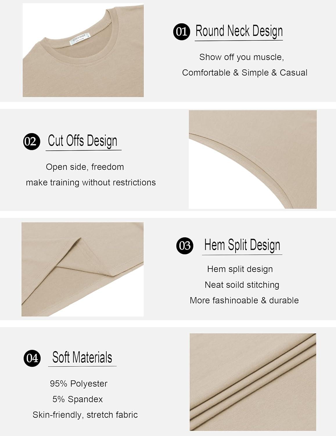 COOFANDY Men Workout Tank Top 2 Pack Gym Bodybuilding Sleeveless Muscle T Shirts(Black/Light Khaki(2pcs))