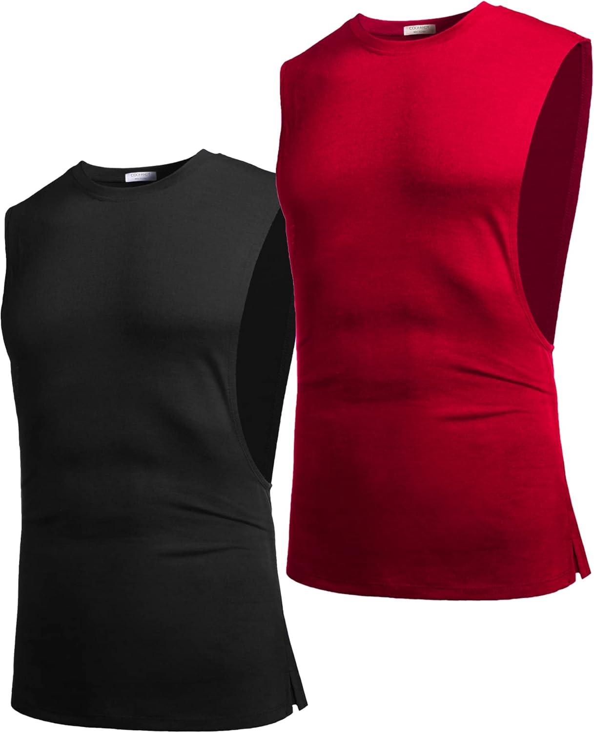 COOFANDY Men Workout Tank Top 2 Pack Gym Bodybuilding Sleeveless Muscle T Shirts(Black/Red(2pcs))