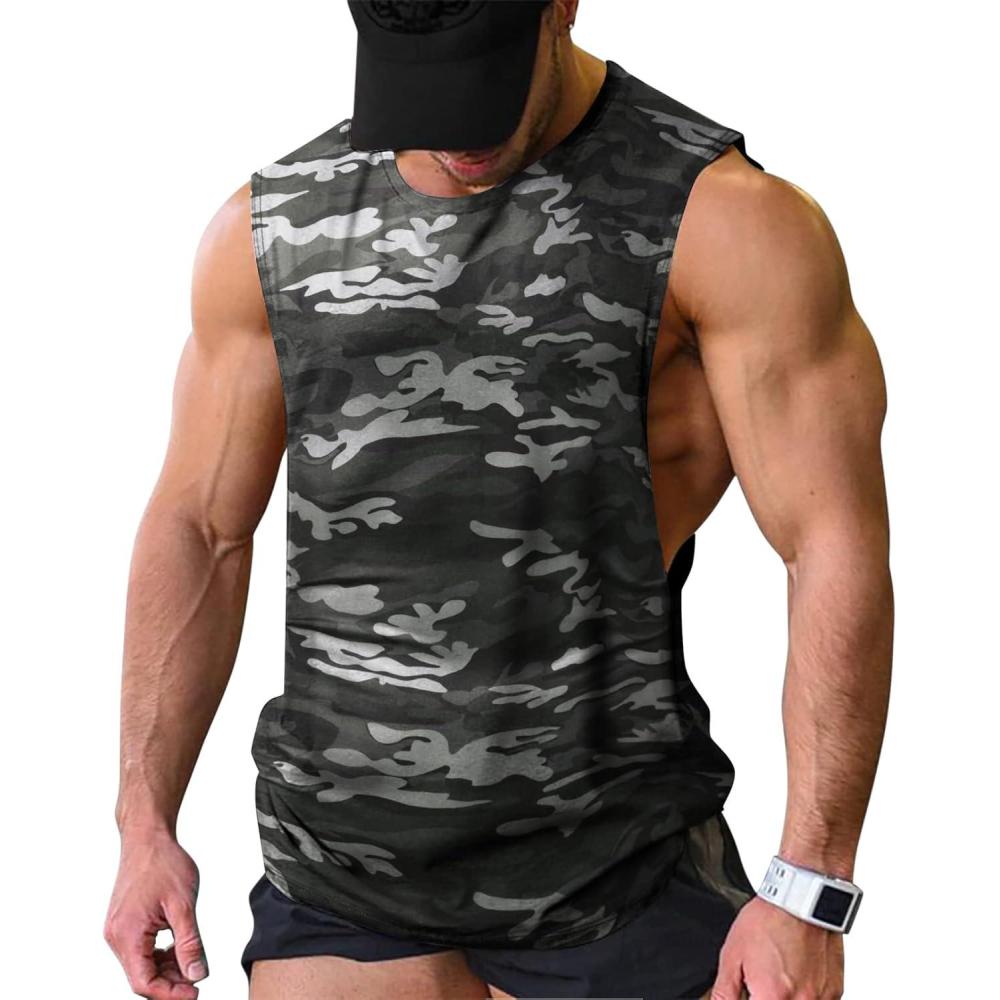 COOFANDY Men Workout Tank Top 2 Pack Gym Bodybuilding Sleeveless Muscle T Shirts(Camo Black)