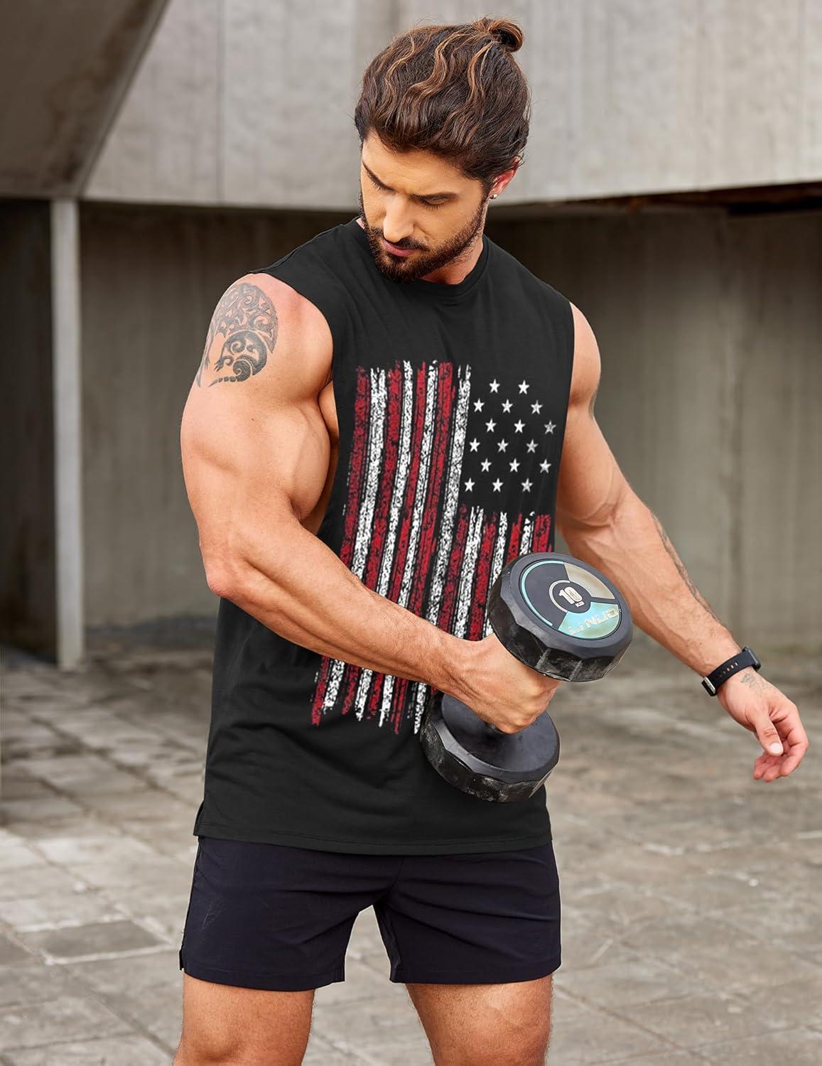 COOFANDY Men Workout Tank Top 2 Pack Gym Bodybuilding Sleeveless Muscle T Shirts(Usa Flag 01)