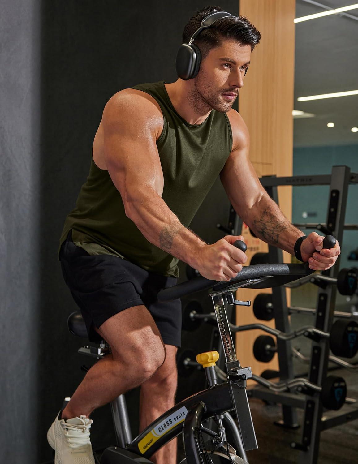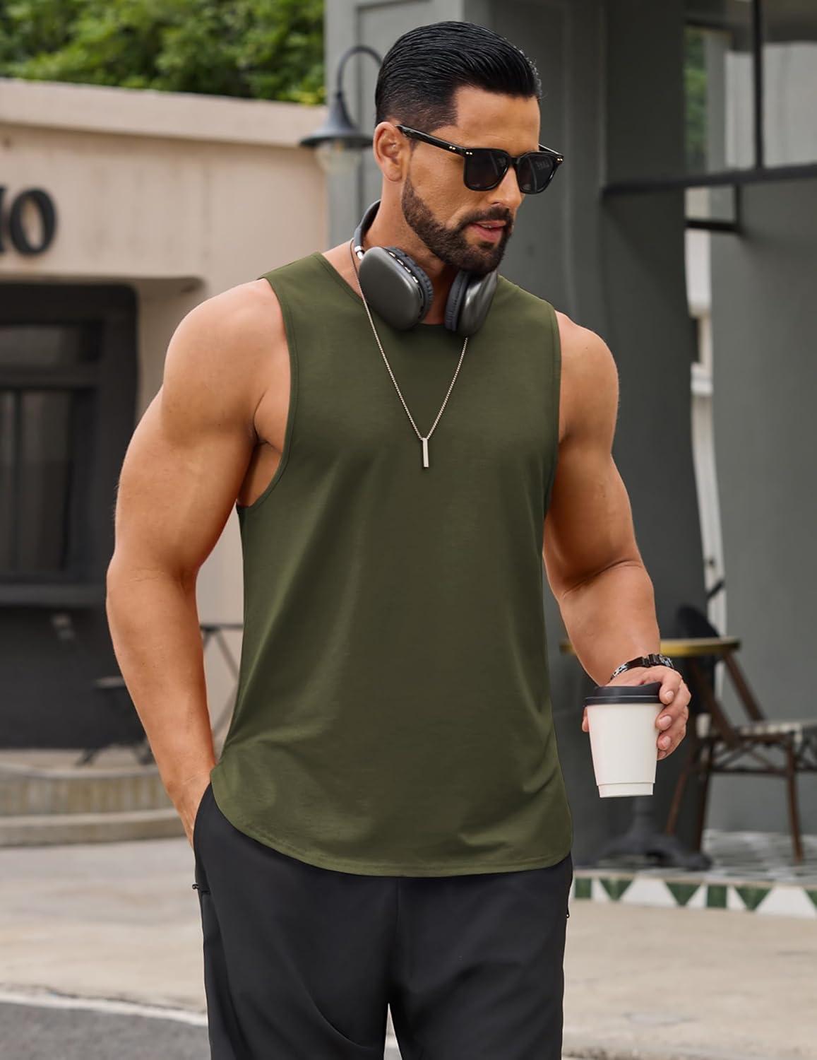 COOFANDY Men Workout Tank Tops Sleeveless Gym Muscle Shirt Quick Dry Athletic Running Tee Shirts Summer Lightweight(Army Green)