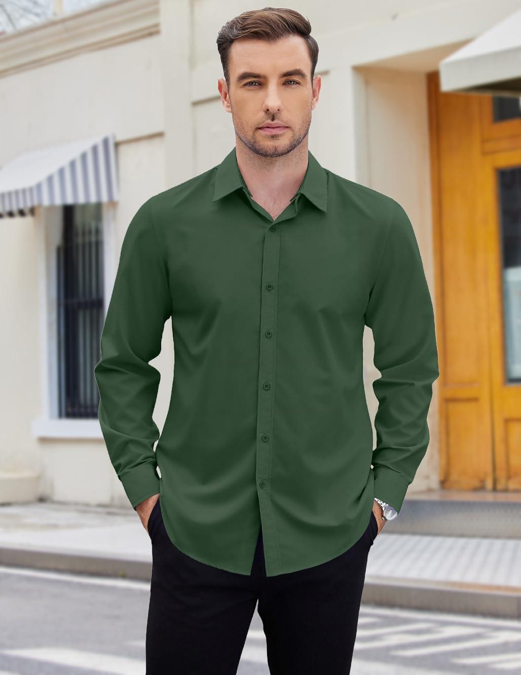 COOFANDY Mens 2-in-1 Dress Shirts Detachable Collar Long Sleeve Wrinkle Free Shirt Business Casual Button Down Shirt(Green)