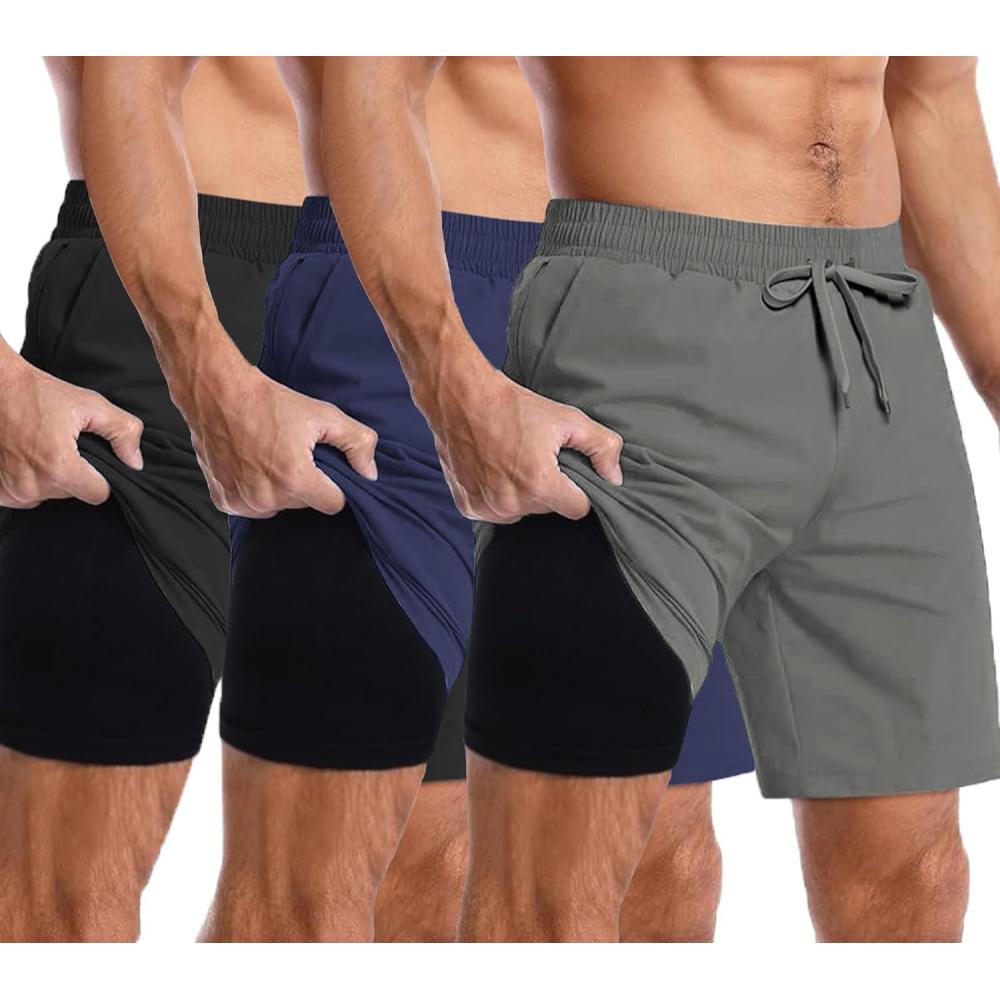 COOFANDY Men's 2 in 1 Running Shorts 2 Pack Athletic Shorts Quick Dry Gym Training Workout Shorts with Pockets(Black/Dark Grey/Navy Blue)