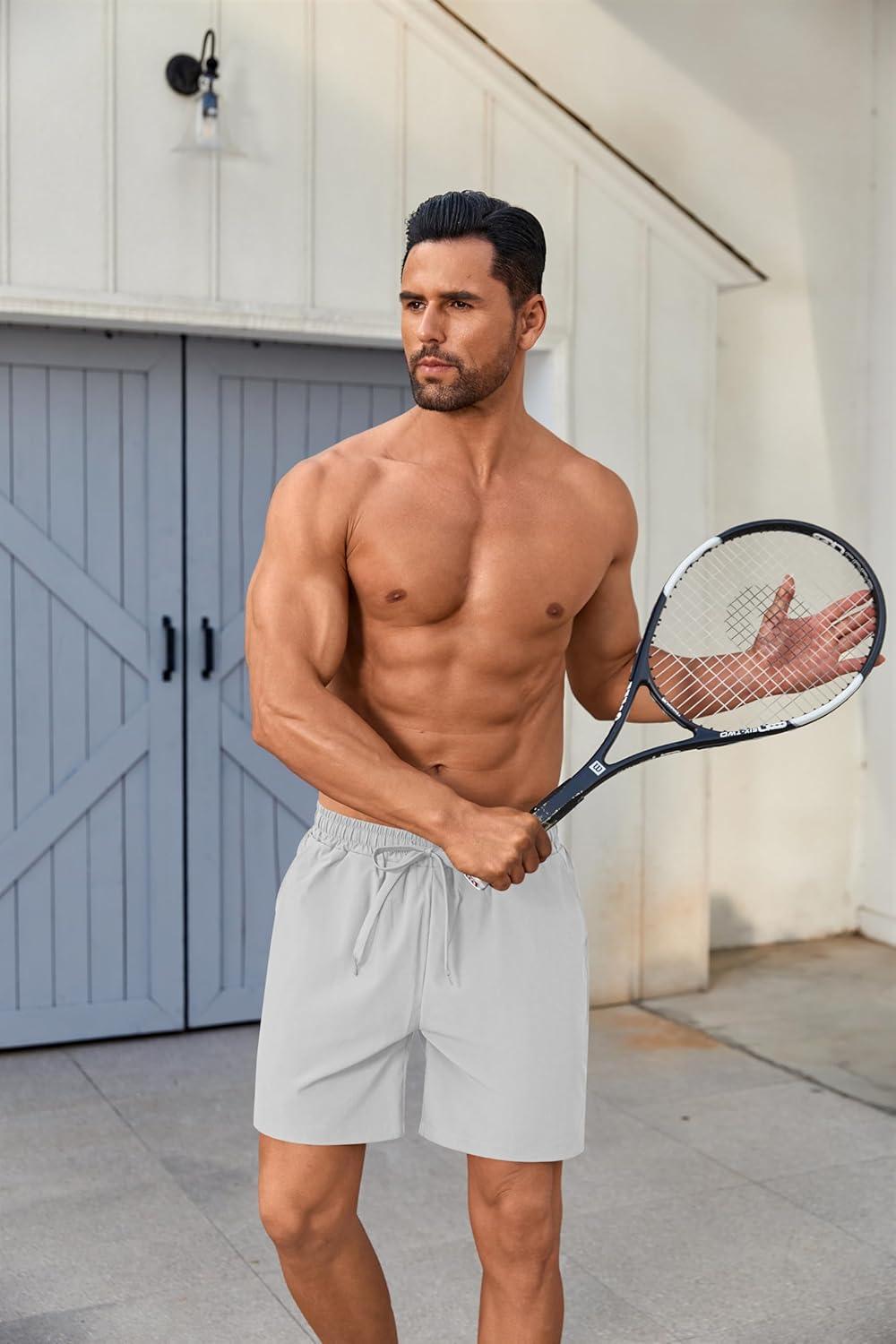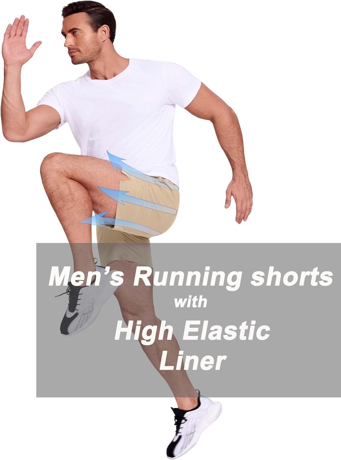 COOFANDY Men's 2 in 1 Running Shorts 2 Pack Athletic Shorts Quick Dry Gym Training Workout Shorts with Pockets(Khaki/Grey)