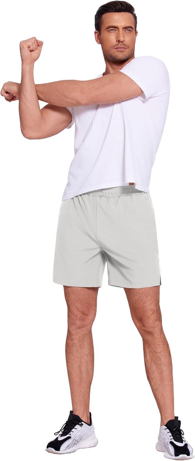 COOFANDY Men’s 2 in 1 Running Shorts 2 Pack Athletic Shorts Quick Dry Gym Training Workout Shorts with Pockets(Khaki/Grey)