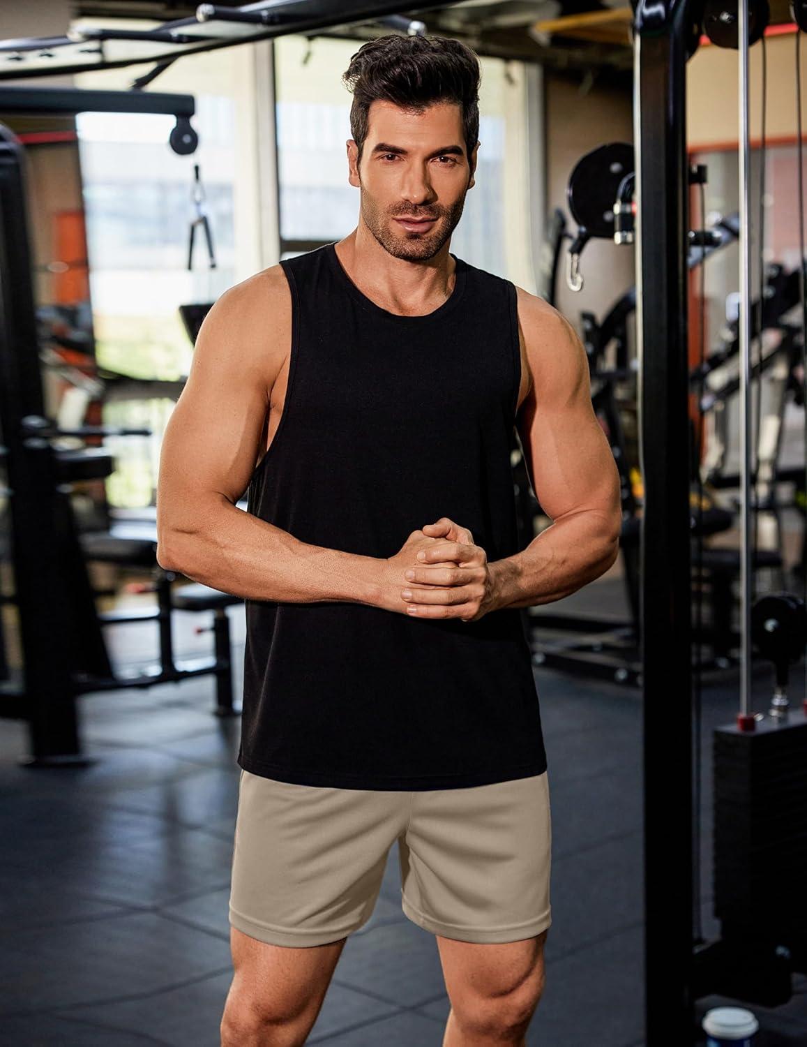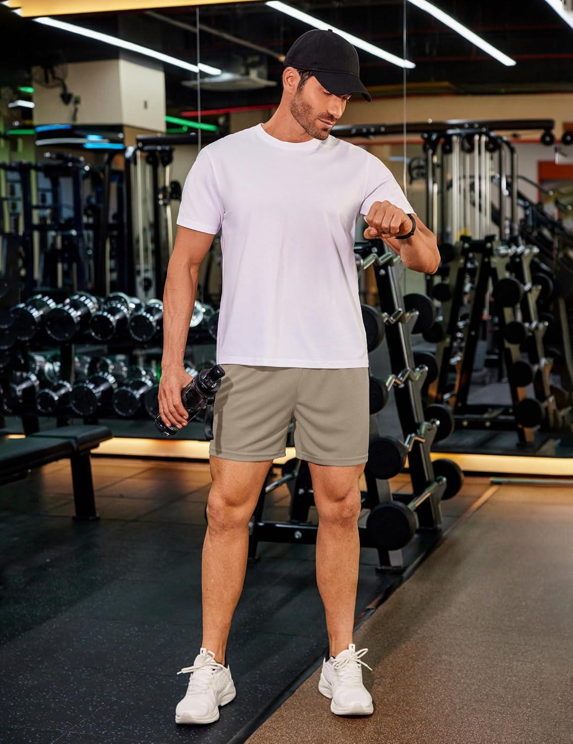 COOFANDY Men’s 2 Pack Gym Workout Shorts 5 Inch Mesh Athletic Shorts Quick Dry Running Shorts with Pockets(Black / Khaki)