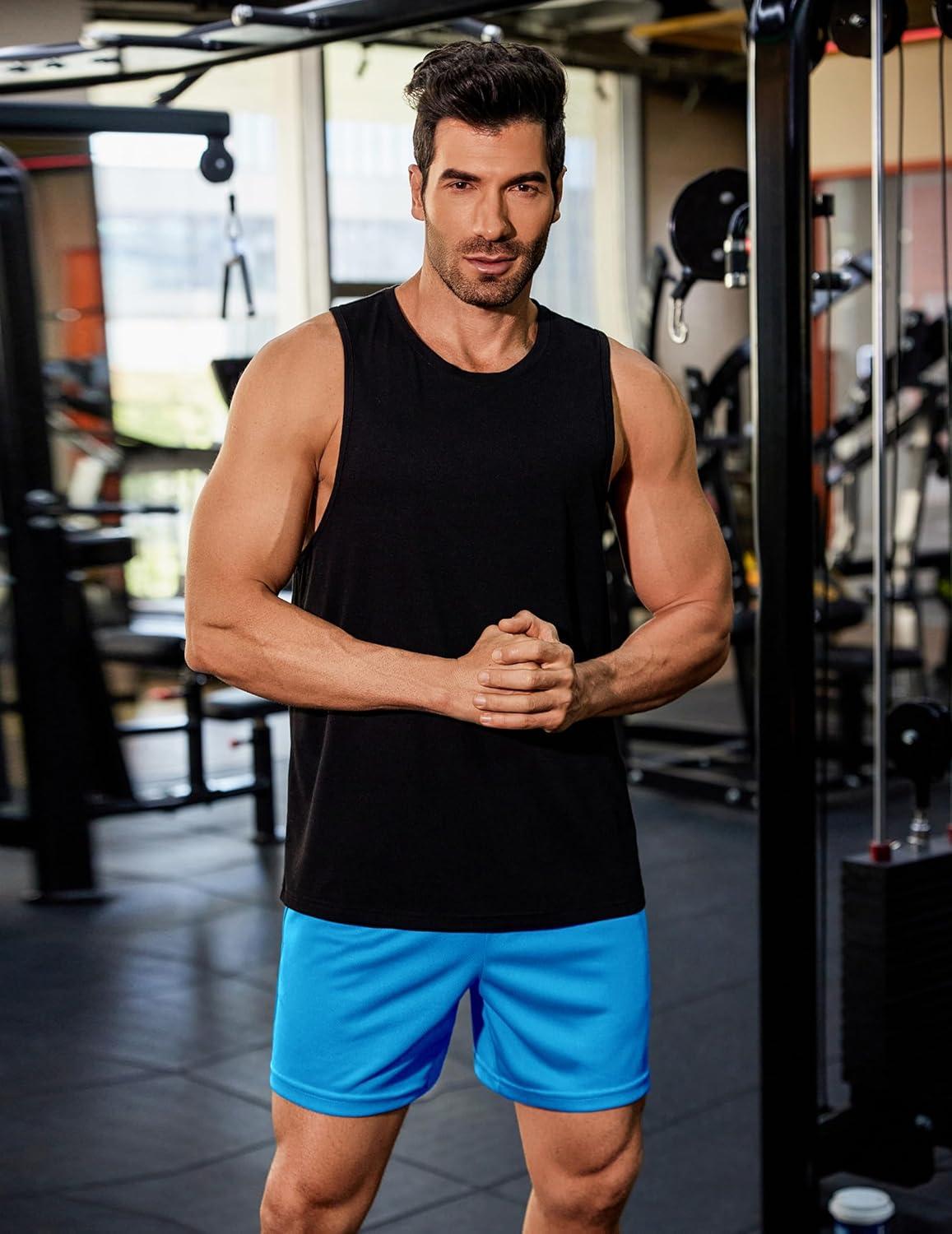 COOFANDY Men’s 2 Pack Gym Workout Shorts 5 Inch Mesh Athletic Shorts Quick Dry Running Shorts with Pockets(Deep Grey / Blue)