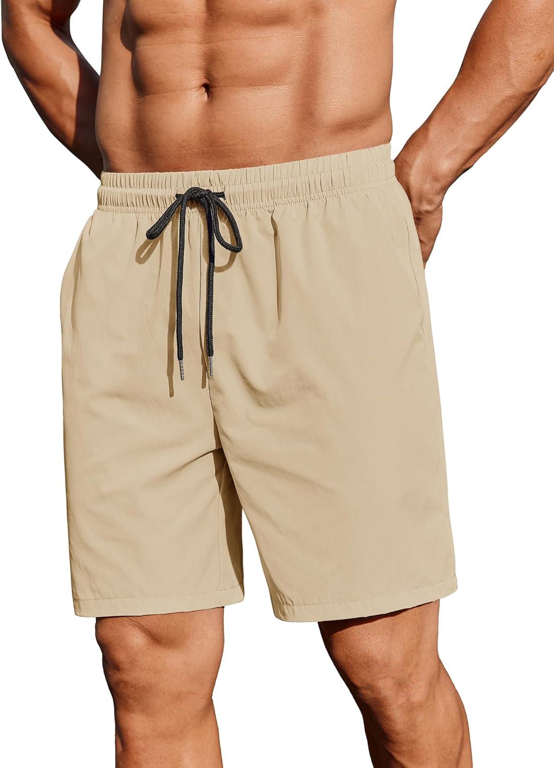 COOFANDY Men’s 2 Pack Gym Workout Shorts 7 Inch Lightweight Athletic Shorts Quick Dry Running Shorts with Pockets(Light Khaki/Light Grey)