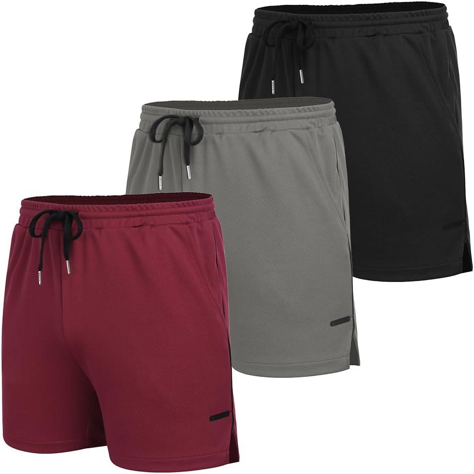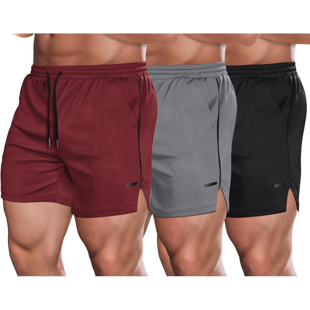COOFANDY Men’s 2 Pack Gym Workout Shorts Quick Dry Athletic Shorts 5 Inch Lightweight Sports Running Shorts with Pockets(3 Pack: Black/Wine Red/Grey)