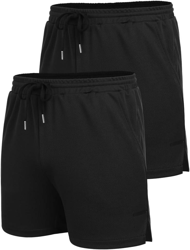 COOFANDY Men’s 2 Pack Gym Workout Shorts Quick Dry Athletic Shorts 5 Inch Lightweight Sports Running Shorts with Pockets(Black/Black)