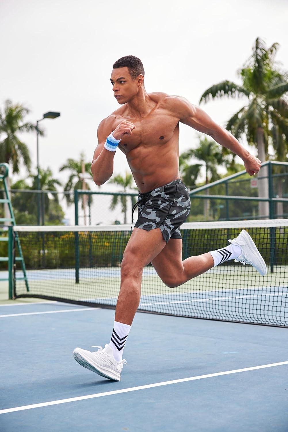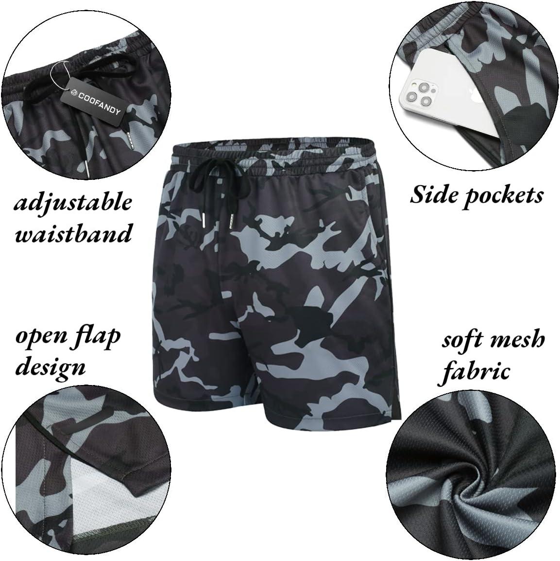 COOFANDY Men’s 2 Pack Gym Workout Shorts Quick Dry Athletic Shorts 5 Inch Lightweight Sports Running Shorts with Pockets(Black/Grey Camo)