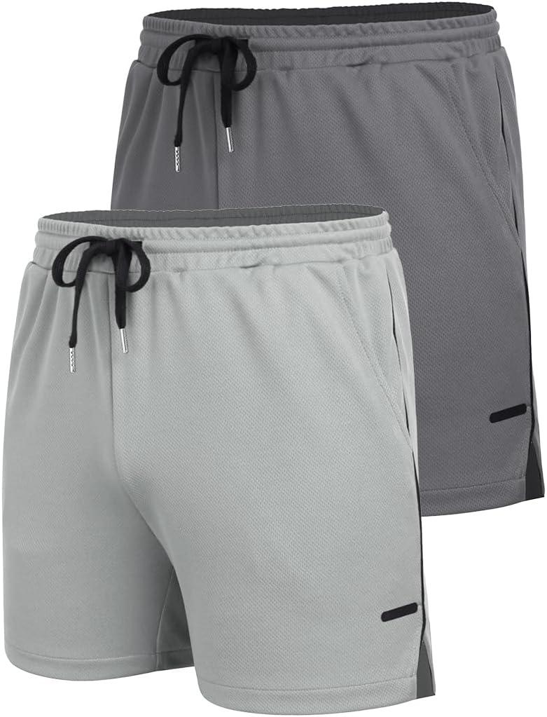 COOFANDY Men's 2 Pack Gym Workout Shorts Quick Dry Athletic Shorts 5 Inch Lightweight Sports Running Shorts with Pockets(Dark Gray/Grey)