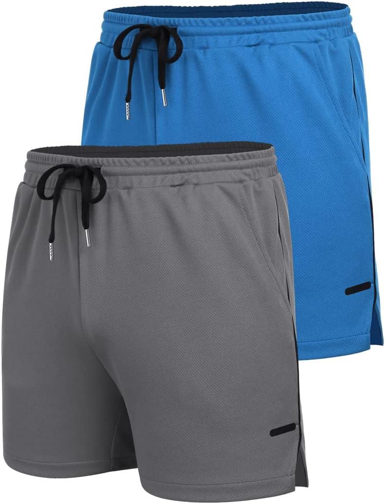 COOFANDY Men's 2 Pack Gym Workout Shorts Quick Dry Athletic Shorts 5 Inch Lightweight Sports Running Shorts with Pockets(Dark Gray/Light Blue)