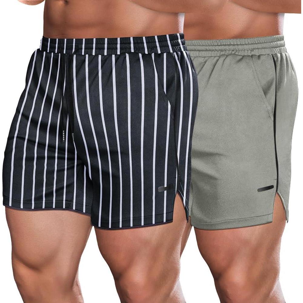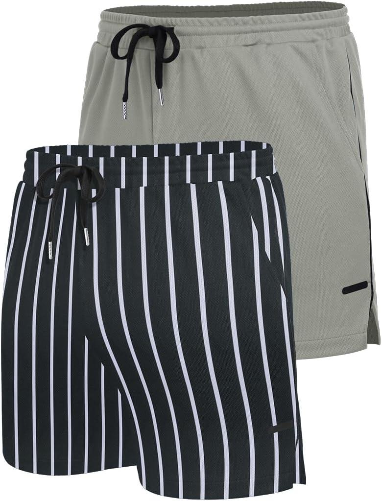 COOFANDY Men's 2 Pack Gym Workout Shorts Quick Dry Athletic Shorts 5 Inch Lightweight Sports Running Shorts with Pockets(Grey/Black & White Stripe)