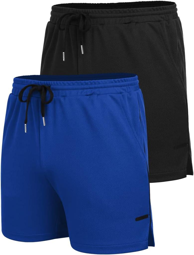 COOFANDY Men's 2 Pack Gym Workout Shorts Quick Dry Athletic Shorts 5 Inch Lightweight Sports Running Shorts with Pockets(Royal Blue/Black)