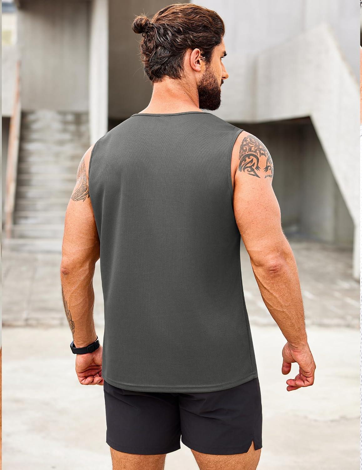 COOFANDY Men’s 2 Pack Muscle Sleeveless Shirt Dry Fit Workout Gym Tank Tops(Black/Dark Grey)