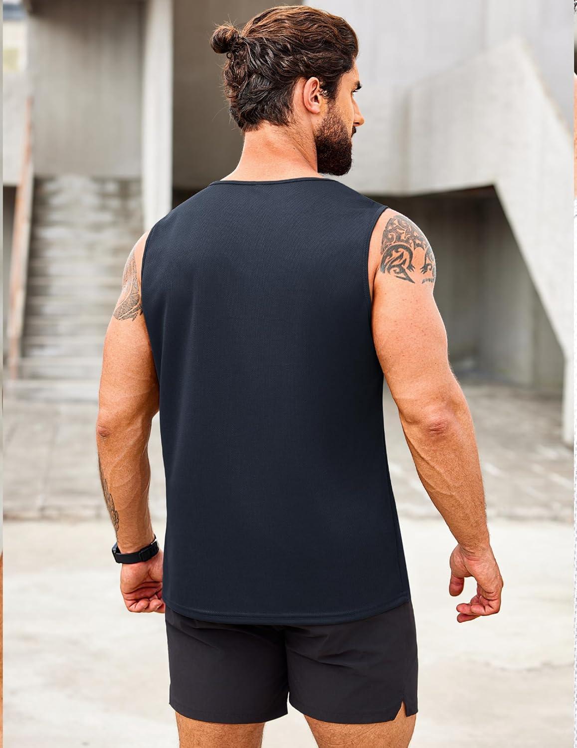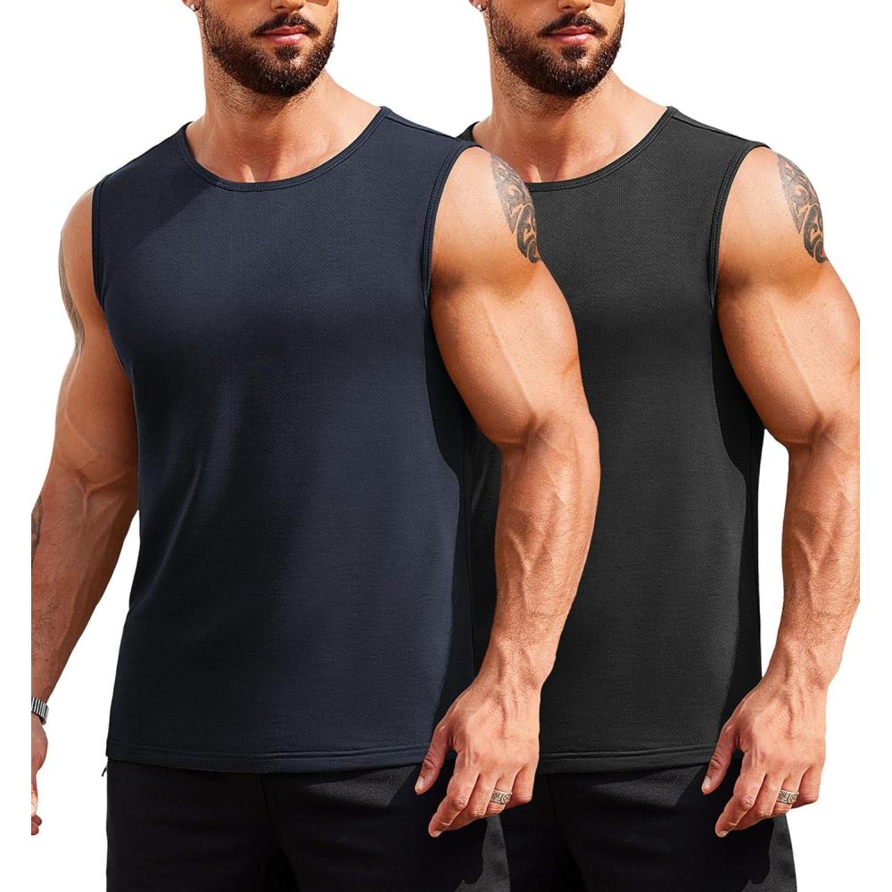 COOFANDY Men's 2 Pack Muscle Sleeveless Shirt Dry Fit Workout Gym Tank Tops(Black/Navy Blue)