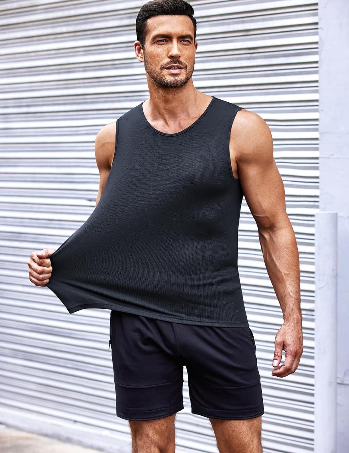 COOFANDY Men’s 2 Pack Muscle Sleeveless Shirt Dry Fit Workout Gym Tank Tops(Black/Dark Grey)