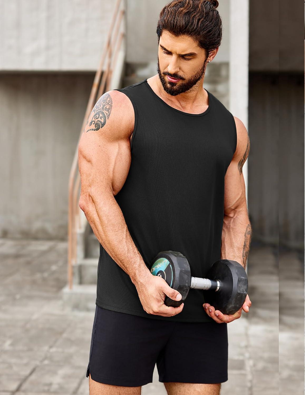 COOFANDY Men’s 2 Pack Muscle Sleeveless Shirt Dry Fit Workout Gym Tank Tops(Black/White)