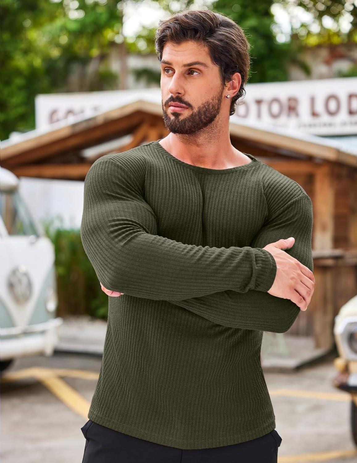 imageCOOFANDY Mens 2 Pack Muscle TShirt Stretch Long Sleeve Gym Workout Bodybuilding Training Tee Shirts Casual Hipster TopsAblueArmy Green