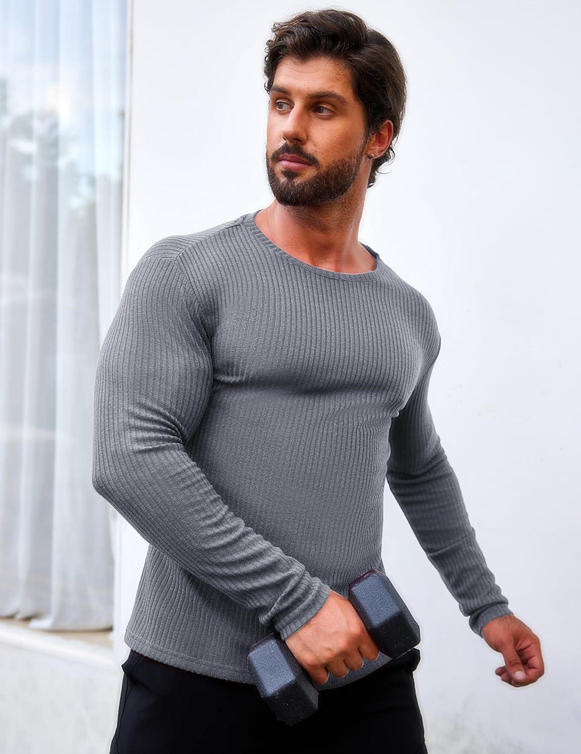 imageCOOFANDY Mens 2 Pack Muscle TShirt Stretch Long Sleeve Gym Workout Bodybuilding Training Tee Shirts Casual Hipster TopsAwine RedDark Grey