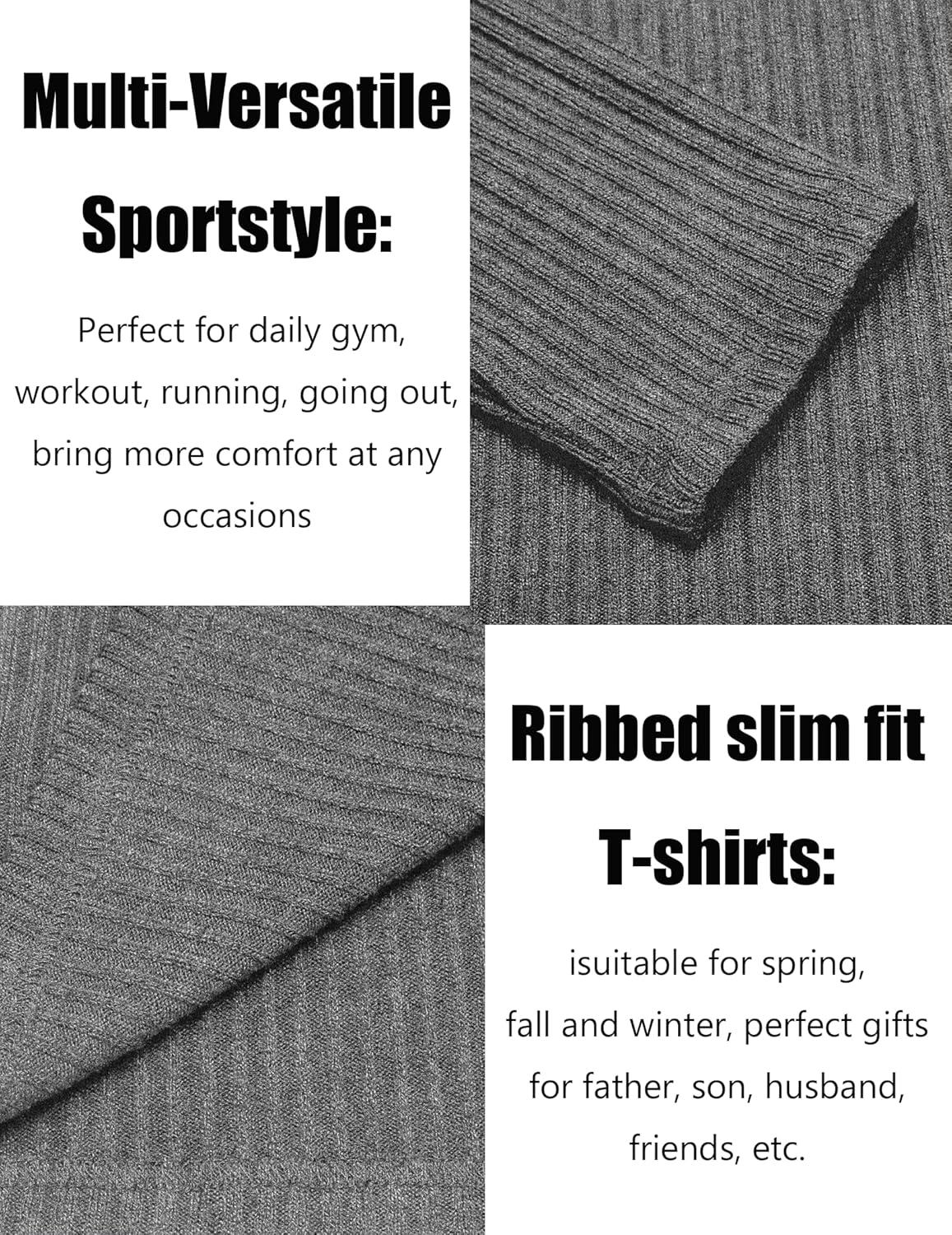 COOFANDY Men’s 2 Pack Muscle T-Shirt Stretch Long Sleeve Gym Workout Bodybuilding Training Tee Shirts Casual Hipster Tops(Black/Army Green)