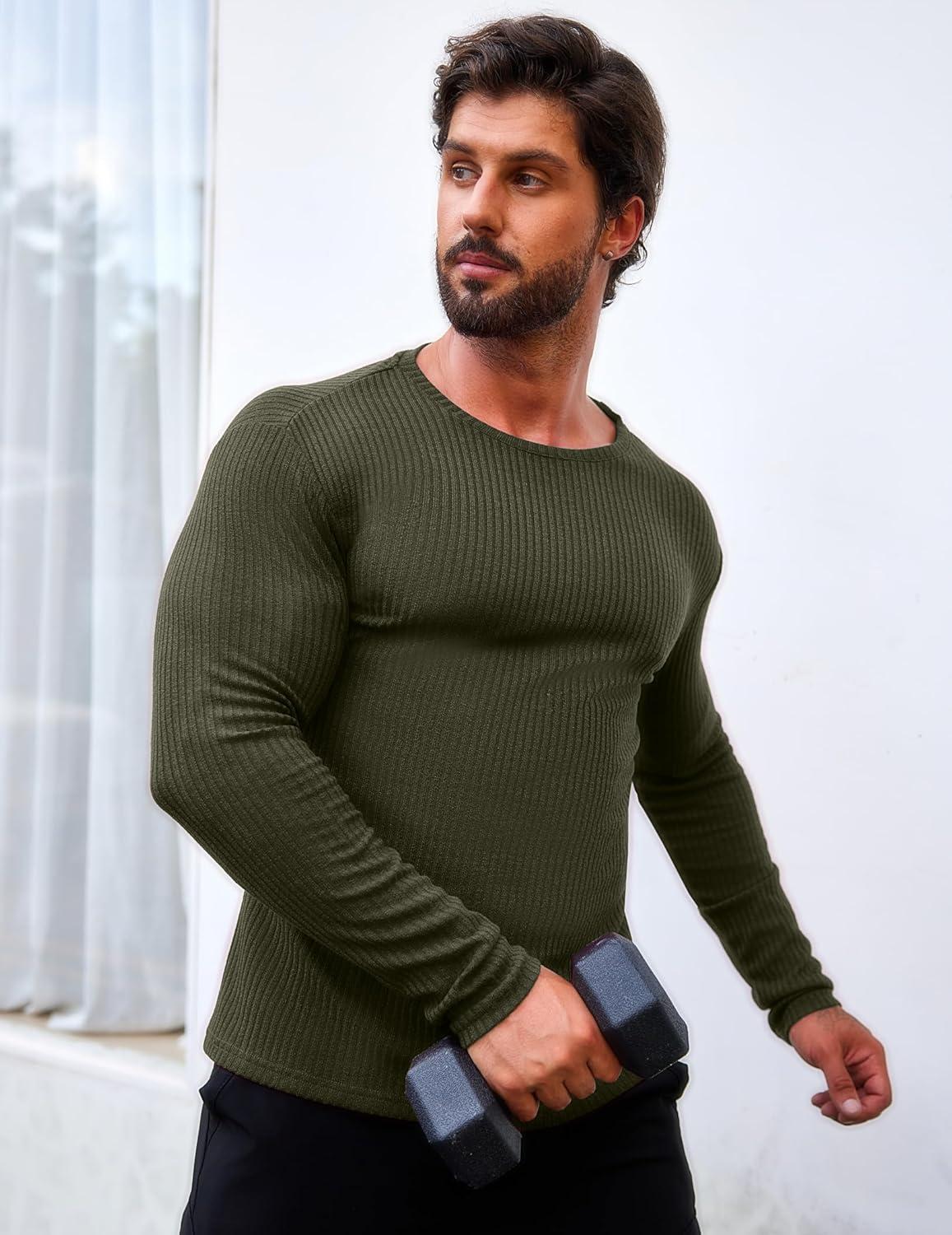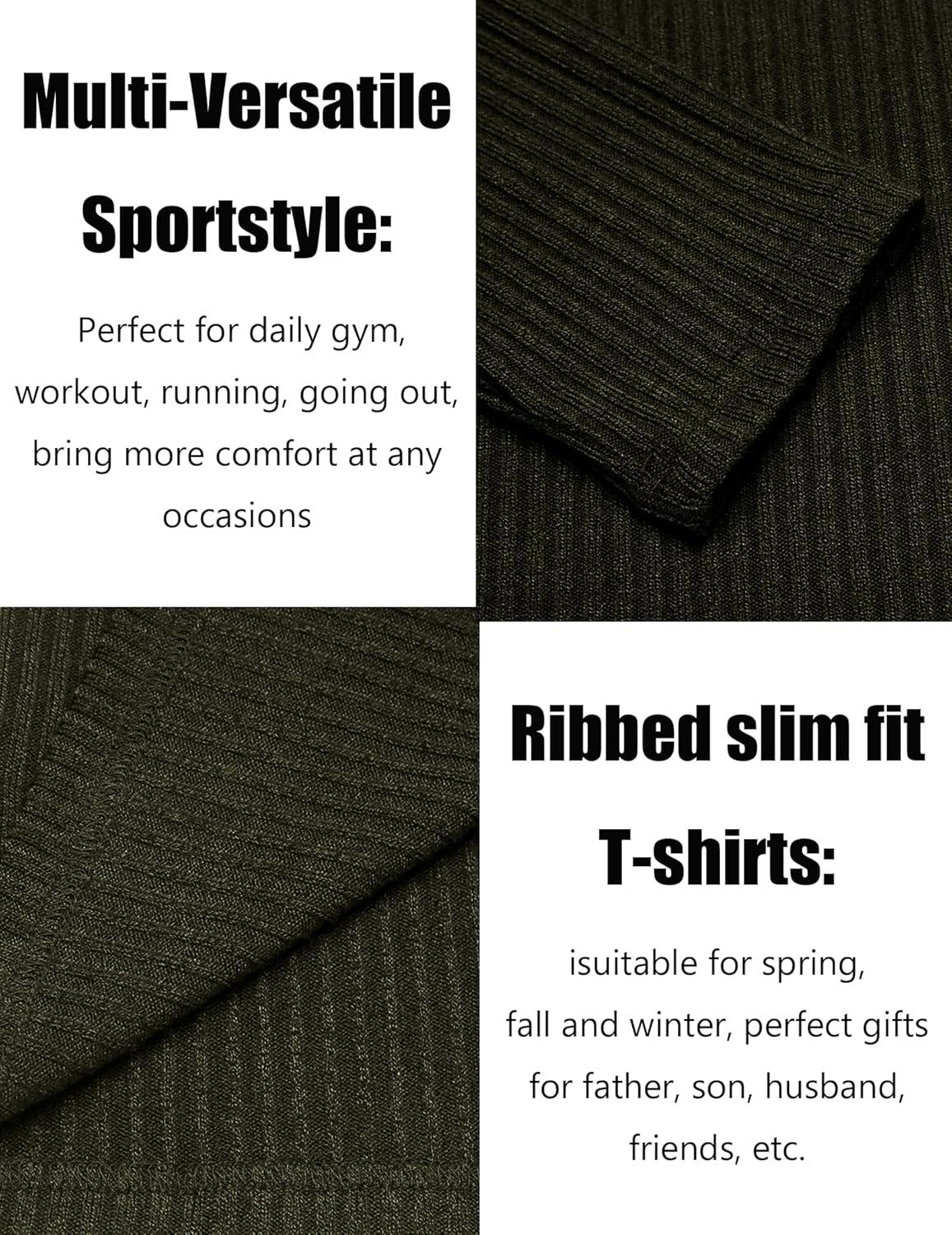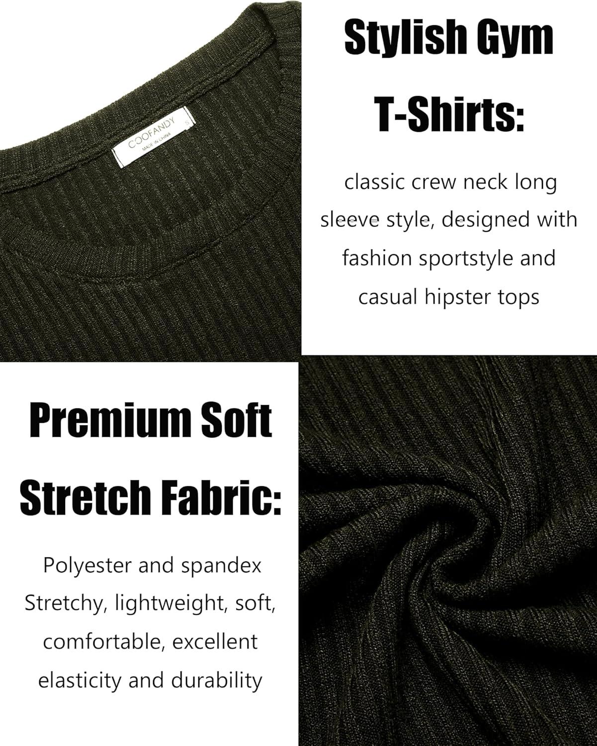 COOFANDY Men’s 2 Pack Muscle T-Shirt Stretch Long Sleeve Gym Workout Bodybuilding Training Tee Shirts Casual Hipster Tops(Black/Army Green)
