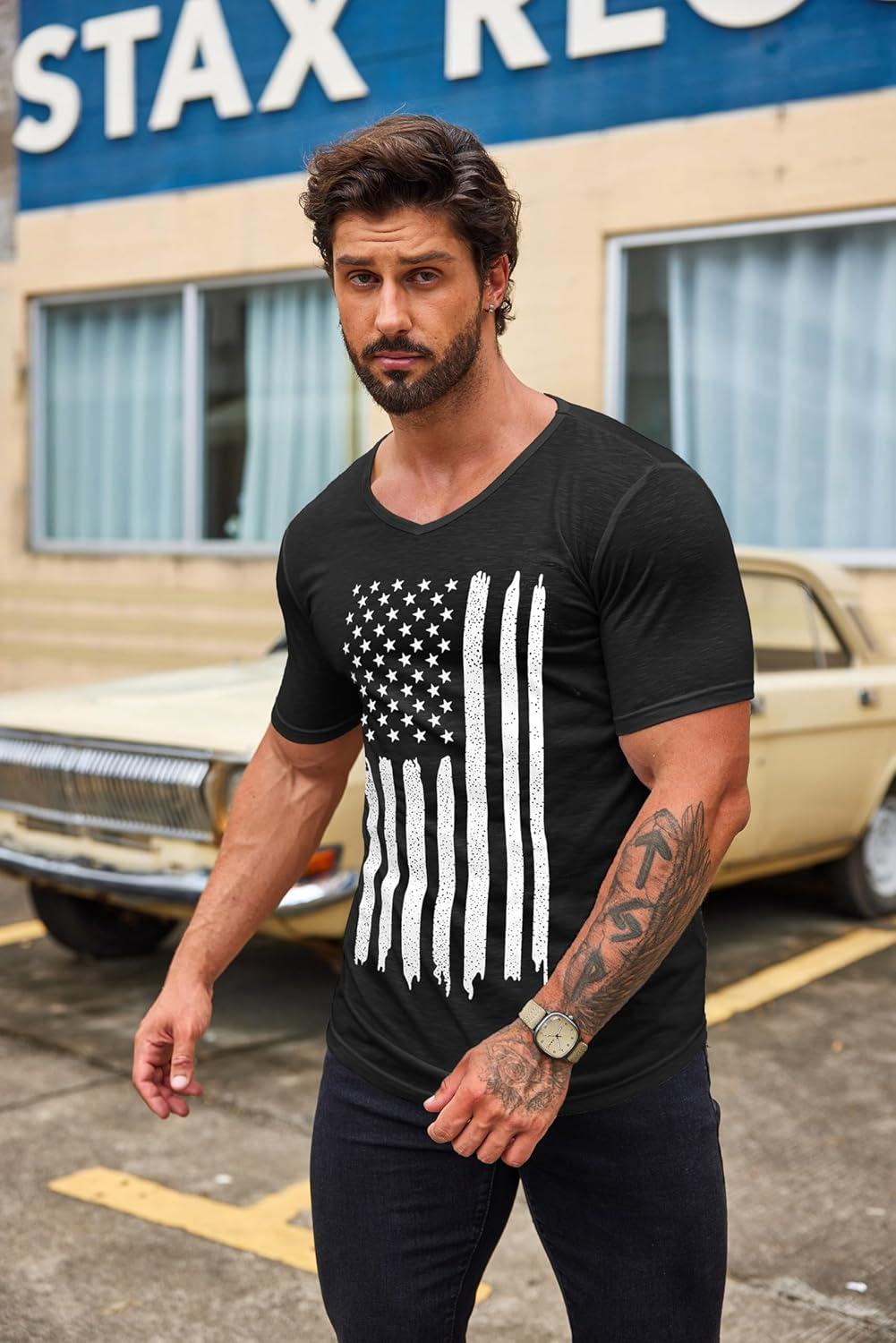 imageCOOFANDY Mens 2 Pack Muscle V Neck T Shirt Fitted Gym Workout Short Sleeve Bodybuilding TeeBlack American Flag