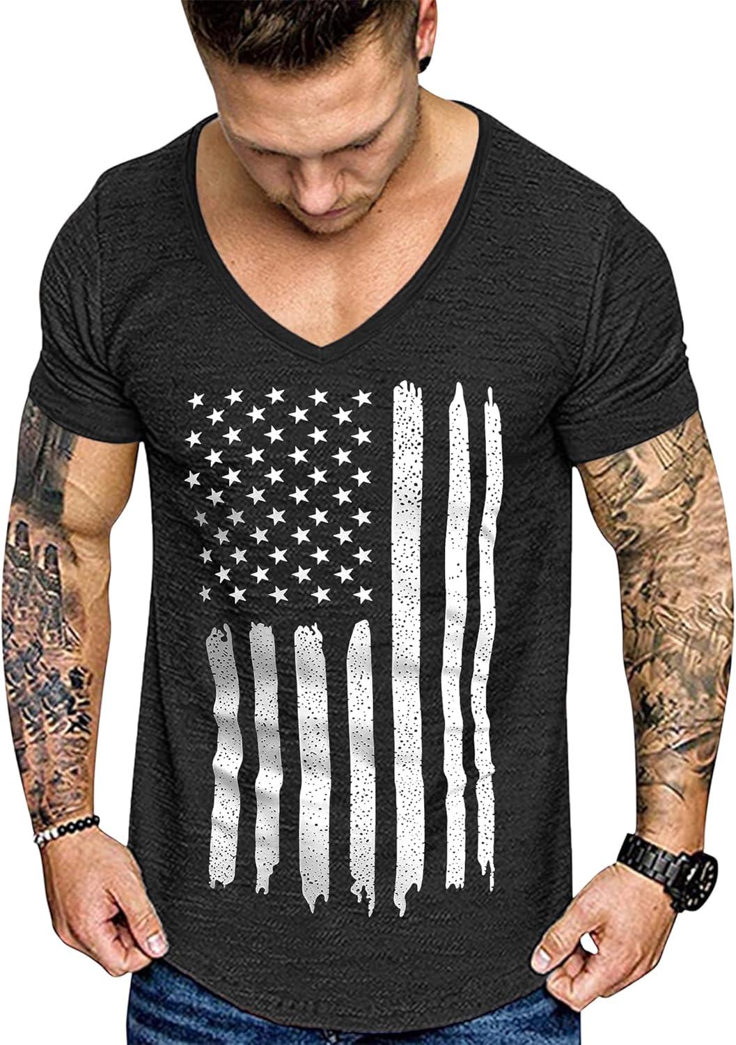 COOFANDY Mens 2 Pack Muscle V Neck T Shirt Fitted Gym Workout Short Sleeve Bodybuilding Tee(Black Usa Flag)