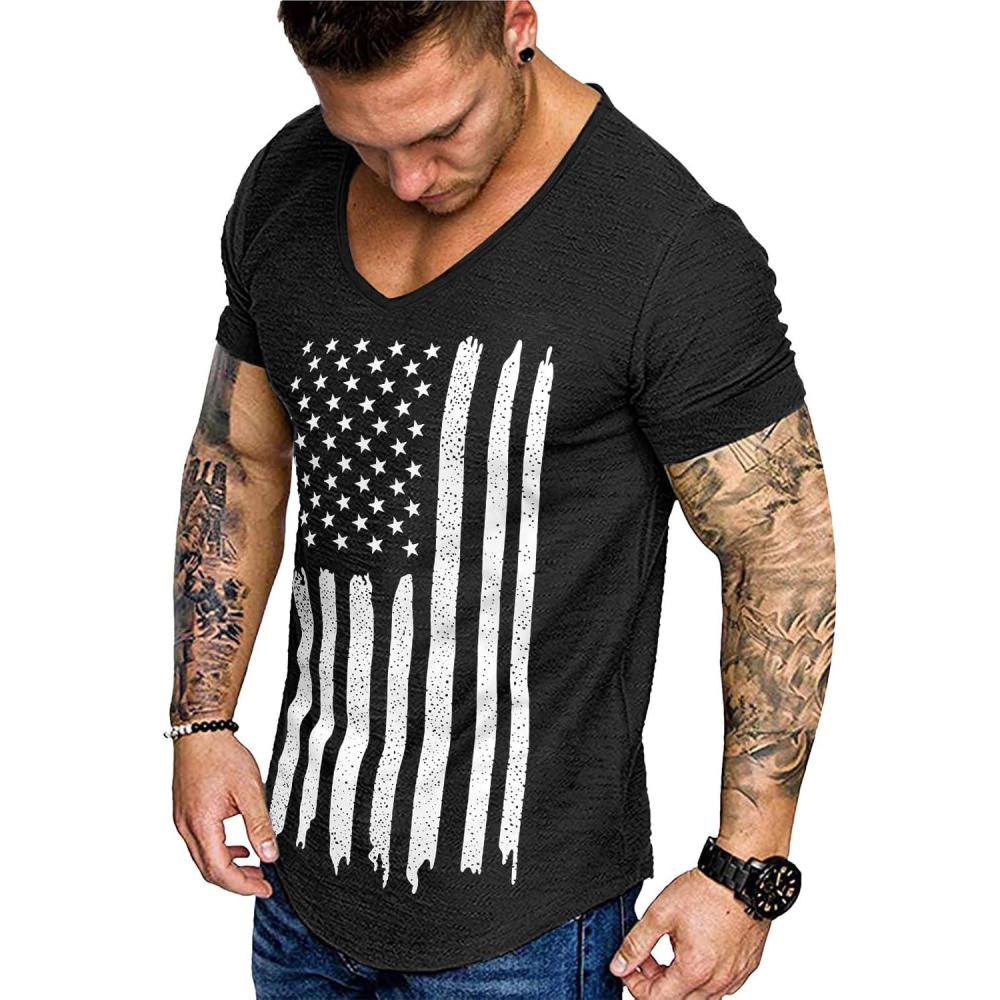 imageCOOFANDY Mens 2 Pack Muscle V Neck T Shirt Fitted Gym Workout Short Sleeve Bodybuilding TeeBlack Usa Flag