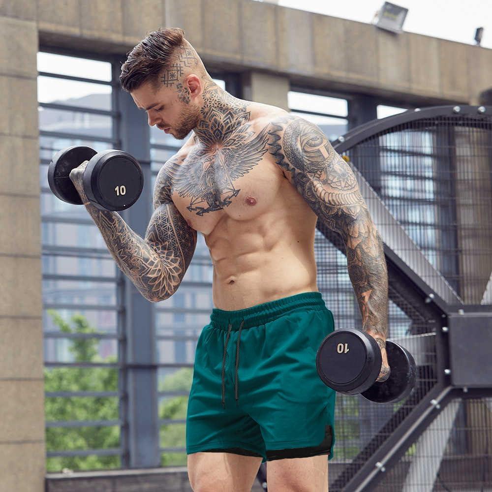 COOFANDY Men's 2 Pack Running Shorts 2 in 1 Workout Shorts Quick Dry Gym Training Athletic Jogger with Phone Pockets(2-pack:peacock Blue+black)