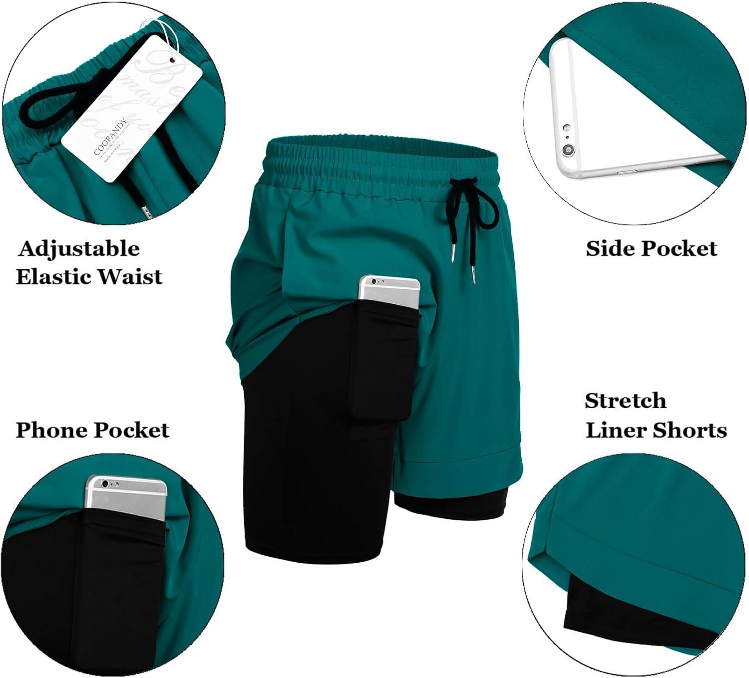 COOFANDY Men’s 2 Pack Running Shorts 2 in 1 Workout Shorts Quick Dry Gym Training Athletic Jogger with Phone Pockets(2-pack:peacock Blue+black)
